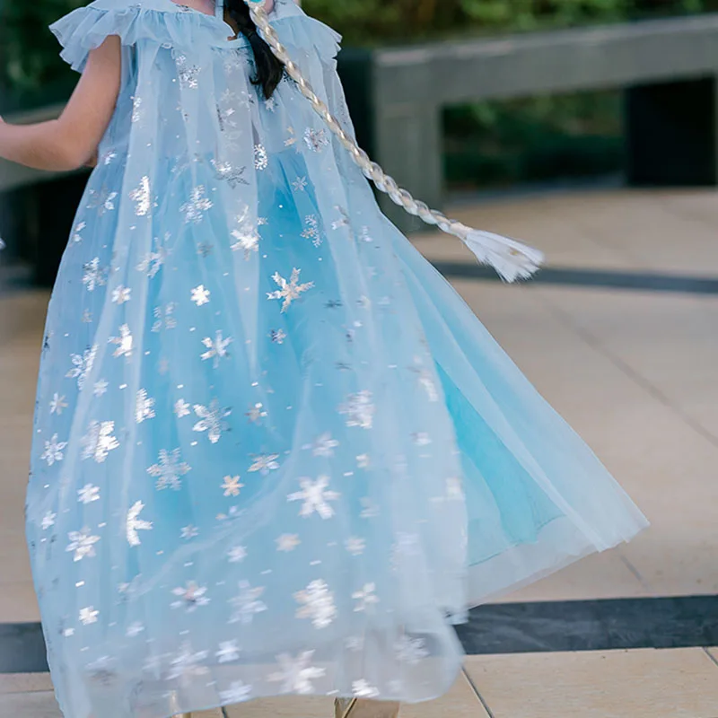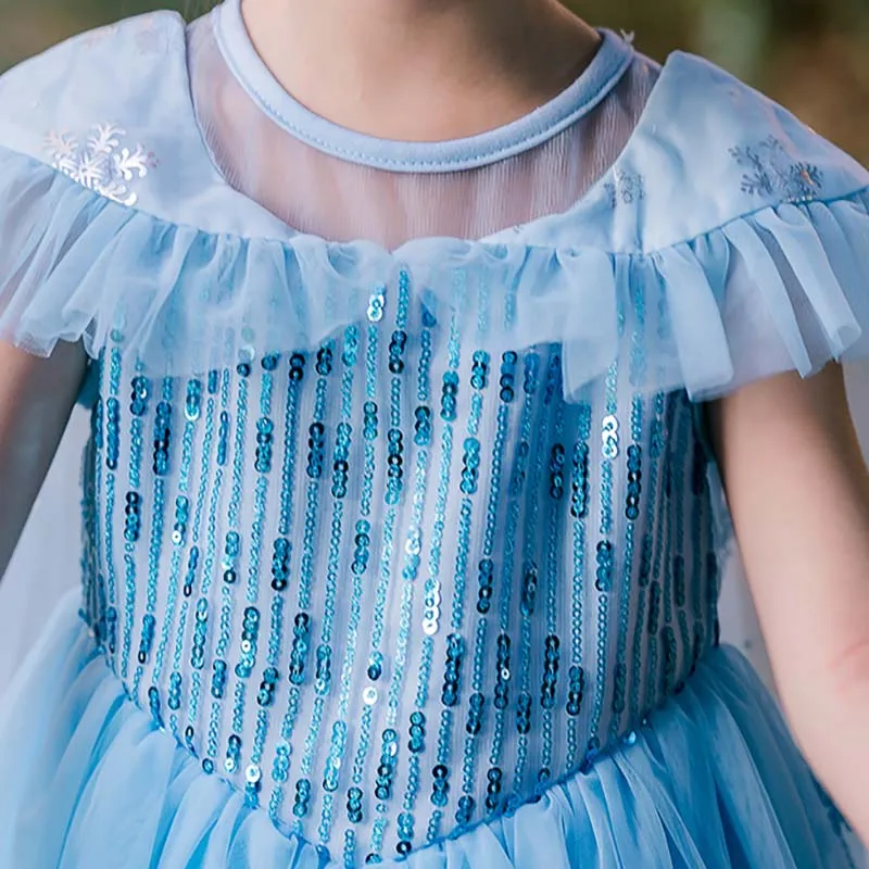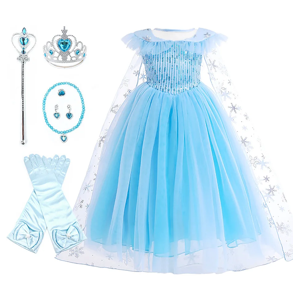 Платье Эльзы для девочек, детская одежда, костюм принцессы с блестками и накидкой, детское платье для косплея Снежной Королевы Elza на Хэллоуин, день рождения