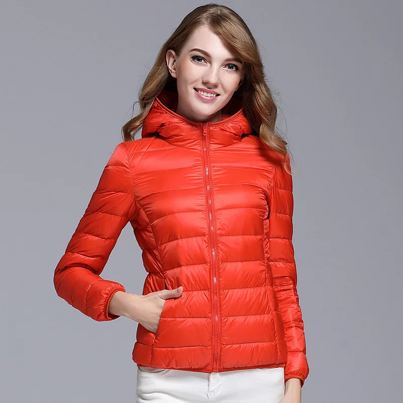 Женские куртки с капюшоном легкие тонкие 2019 весенне-осенние женские бомберы короткое пальто Наполнитель утиный пух женские теплые Базовые Куртки S-7XL