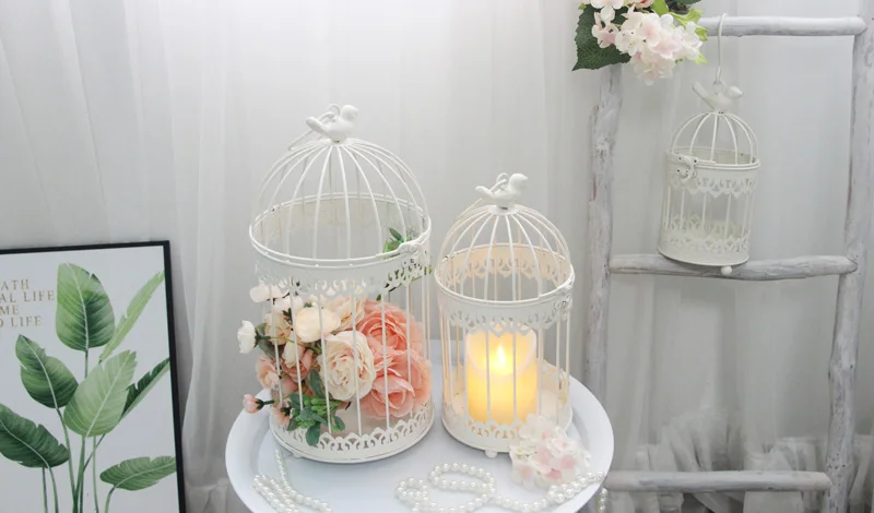 Птичья клетка подвесная Современная железная кованая металлическая птичья клетка белые наборы украшения висячий цветочный горшок суккуленты