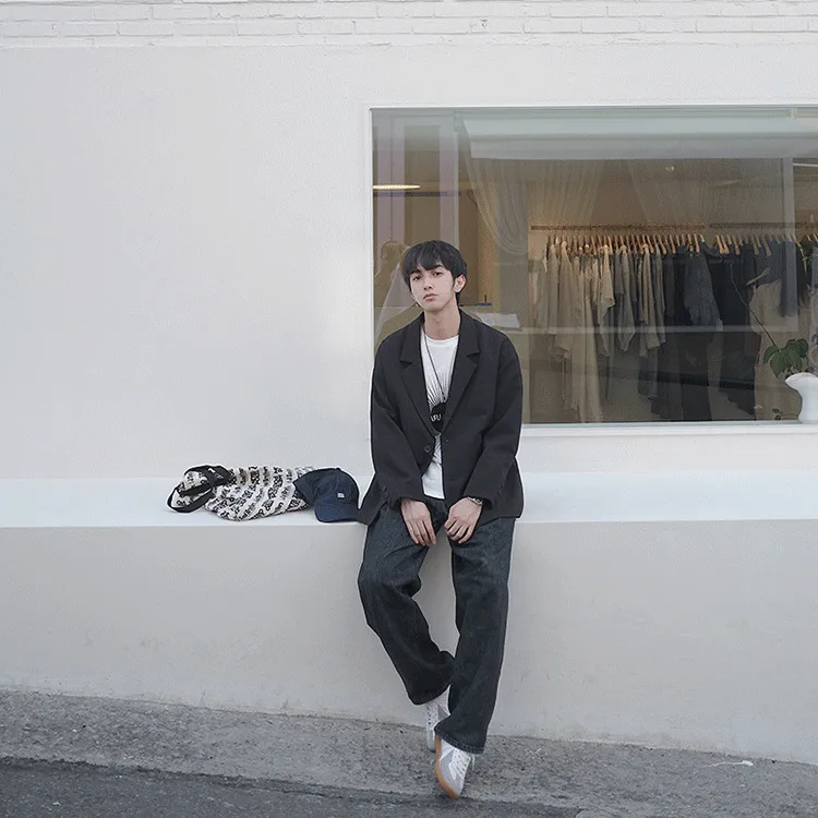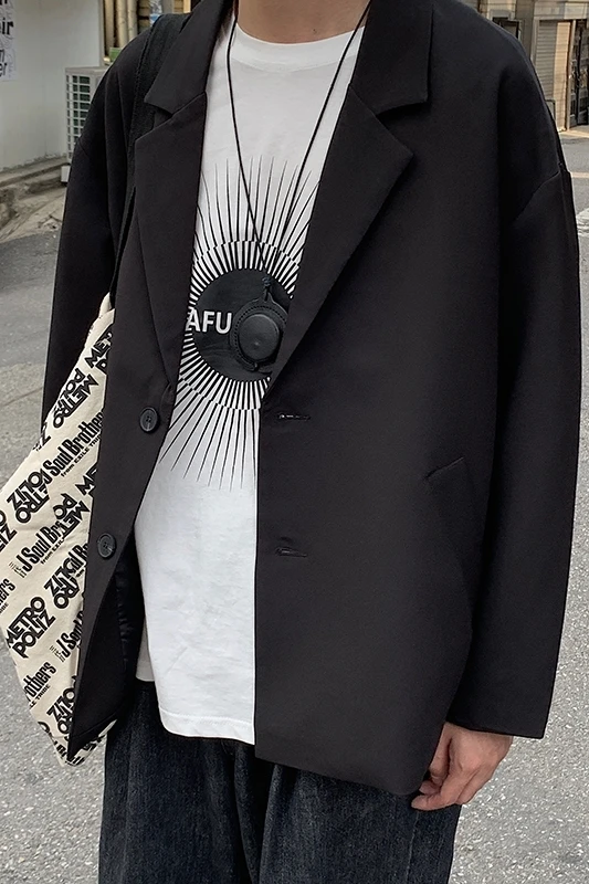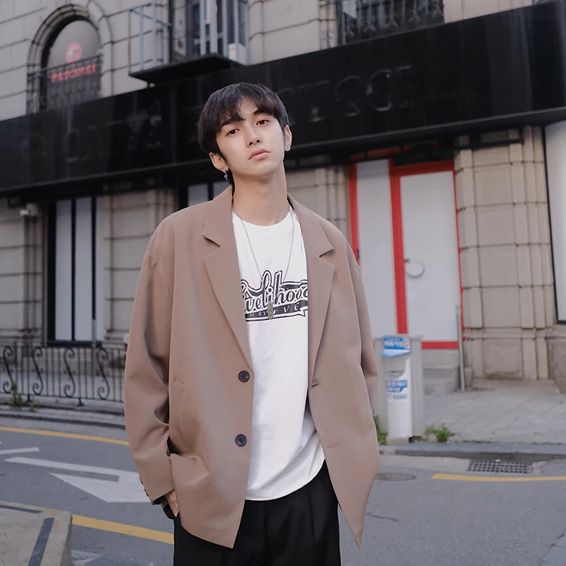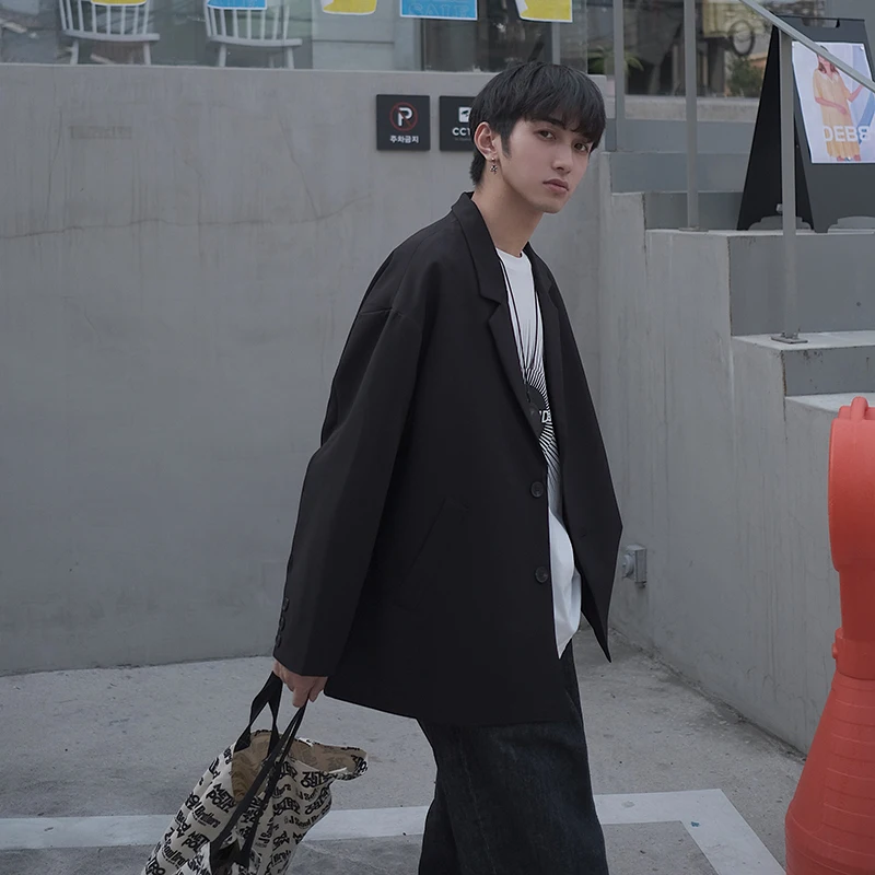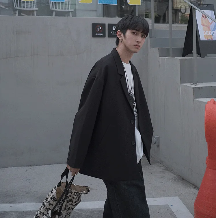 Новинка 2019, весенне-осенний мужской широкий костюм в Корейском стиле свободного покроя, Студенческая Повседневная куртка черного и хаки цвета, на возраст от 1 года до 4 лет, в стиле кэжуал