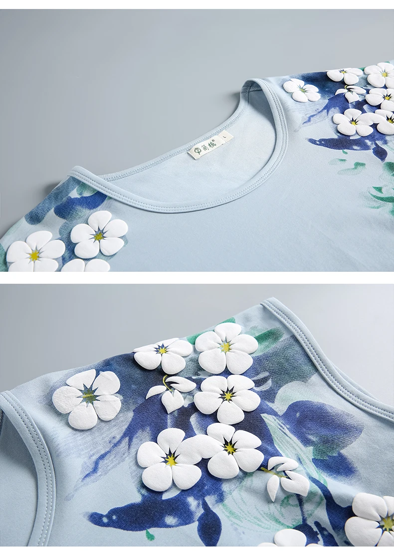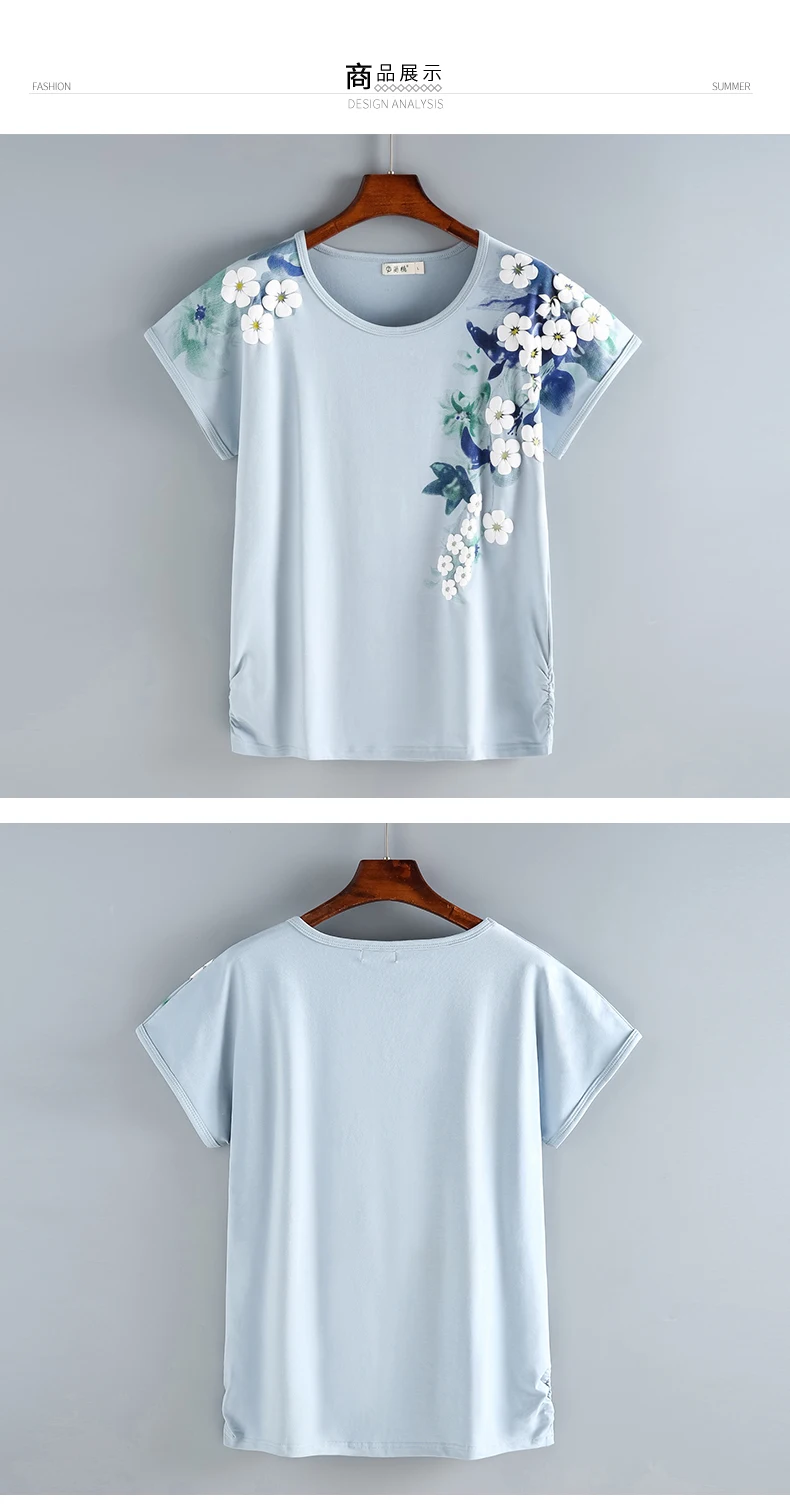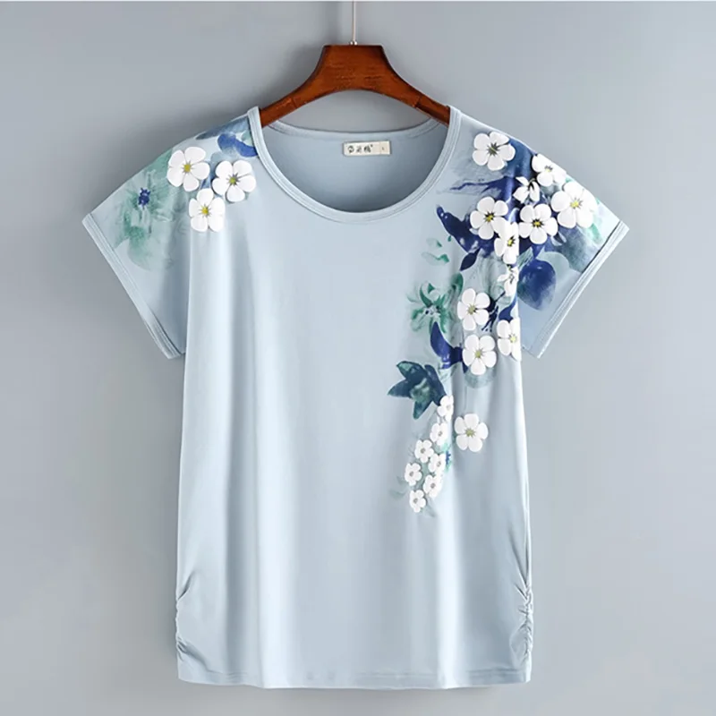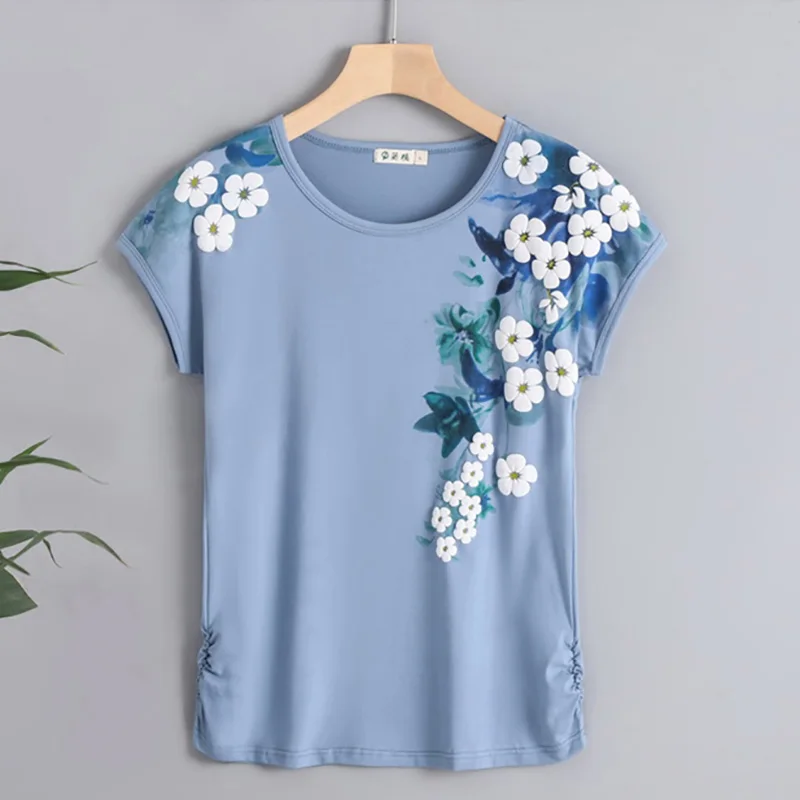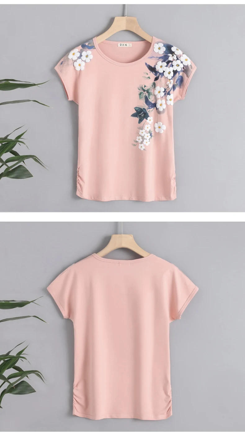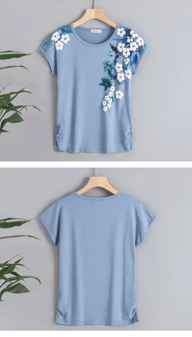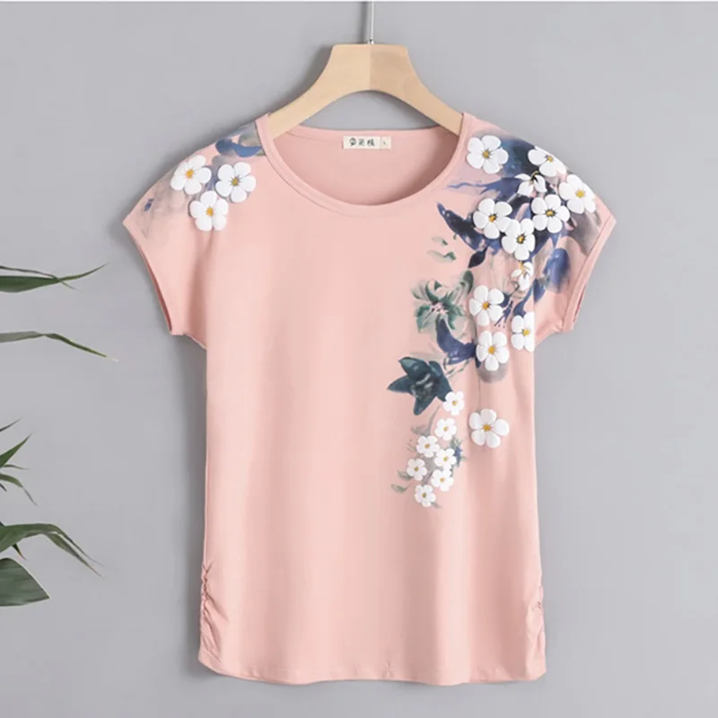 Женская футболка с цветочным принтом, хлопковая футболка с коротким рукавом и круглым вырезом, лето 2022