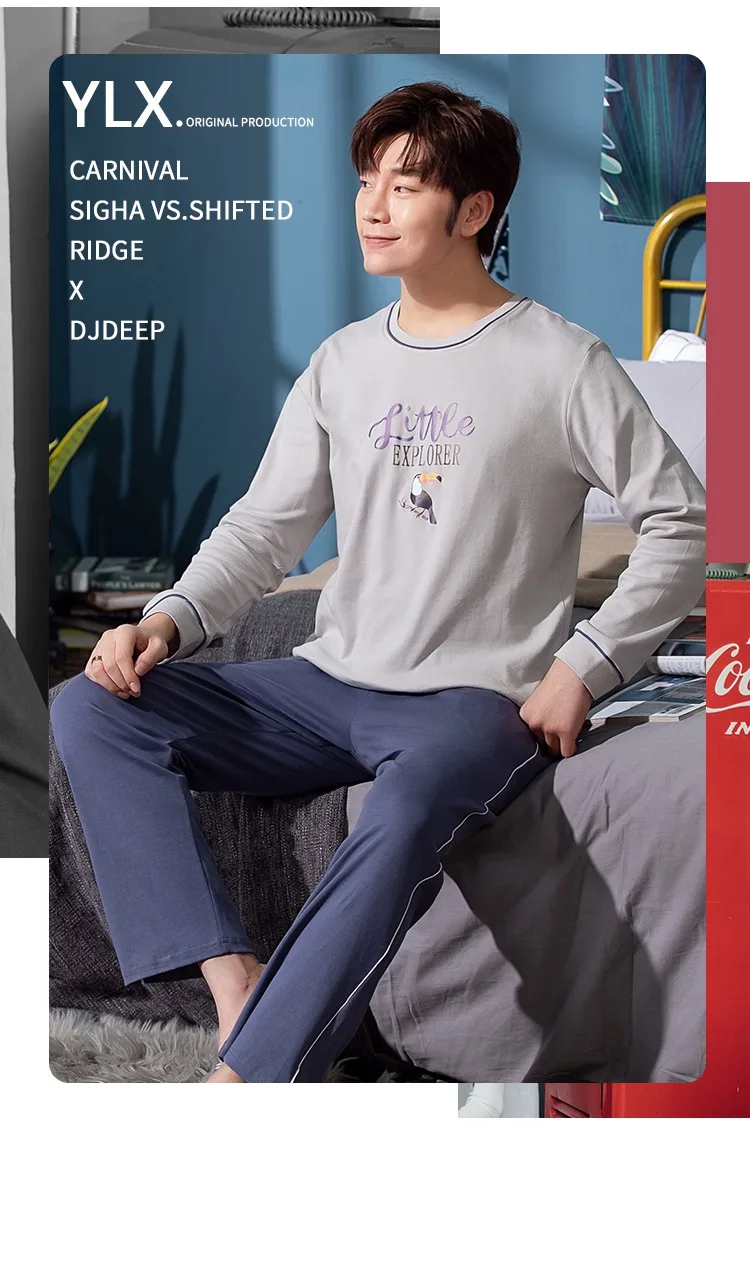 Пижамный комплект мужской, размера плюс хлопок, цвет в ассортименте, M L XL XXL, 2 шткомплект