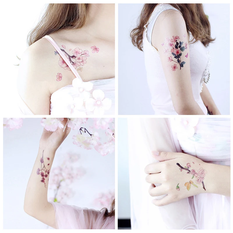 Восточные вишневые цветы тату стикер птица бабочка филиал поддельные конструкции для женщин Девушка временное тело грудь ключицы искусство татуировки