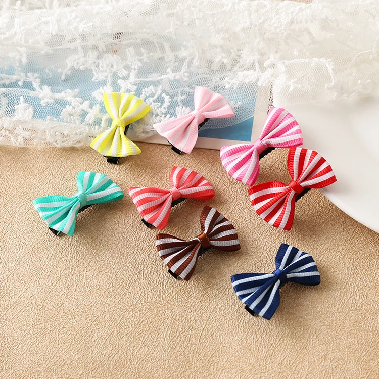 10 шт.лот, маленькие мини заколки для волос с бантом, милые однотонные заколки для волос в горошекполоску, детские заколки для волос