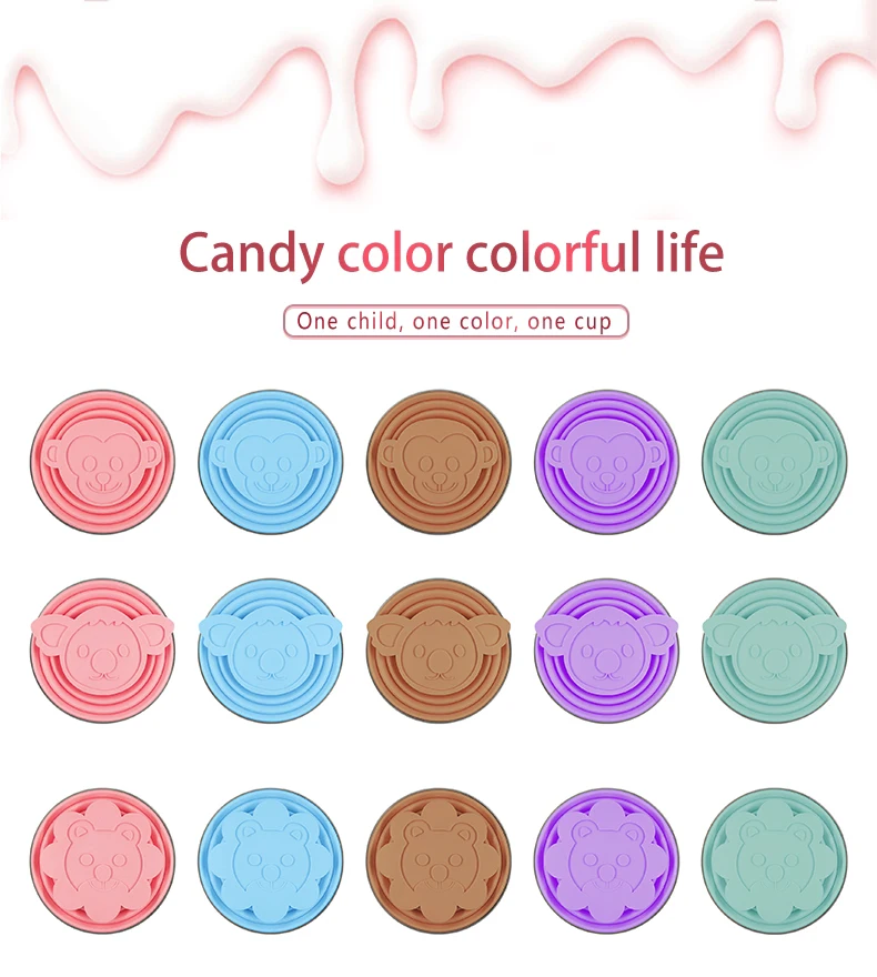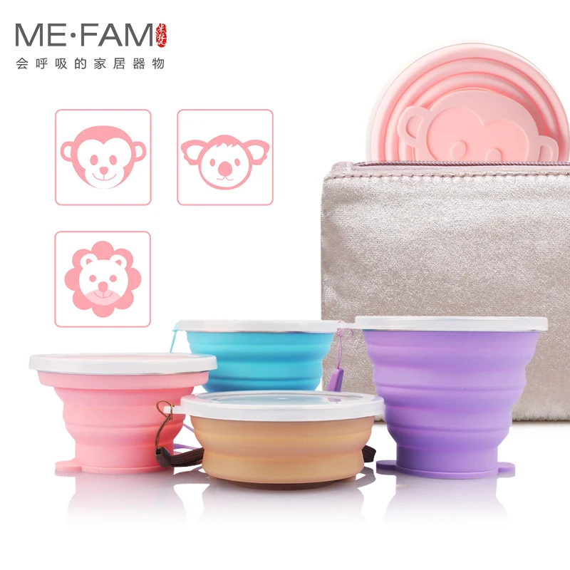ME.FAM набор силиконовых складных чашек, милые Мультяшные животные с крышкой, уличные складные дорожные Детские зубчики для чистки зубов