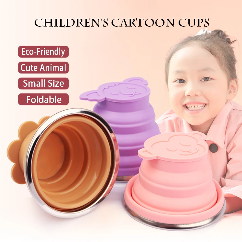 Складная чашка из нержавеющей стали и силикона, мультяшное животное...