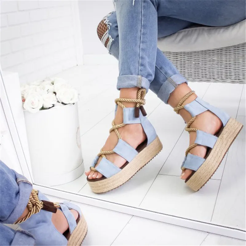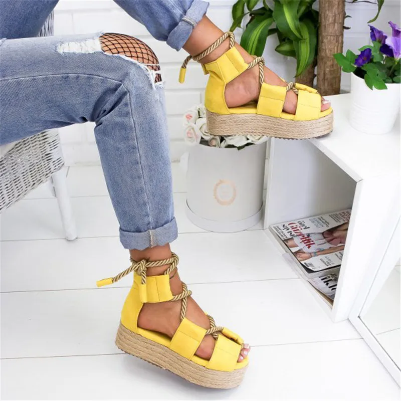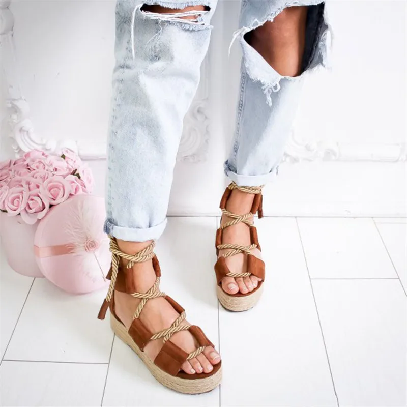 Эспадрильи на танкетке женские, сандалии-гладиаторы с острым носком...