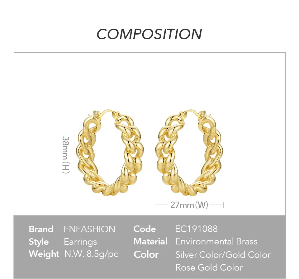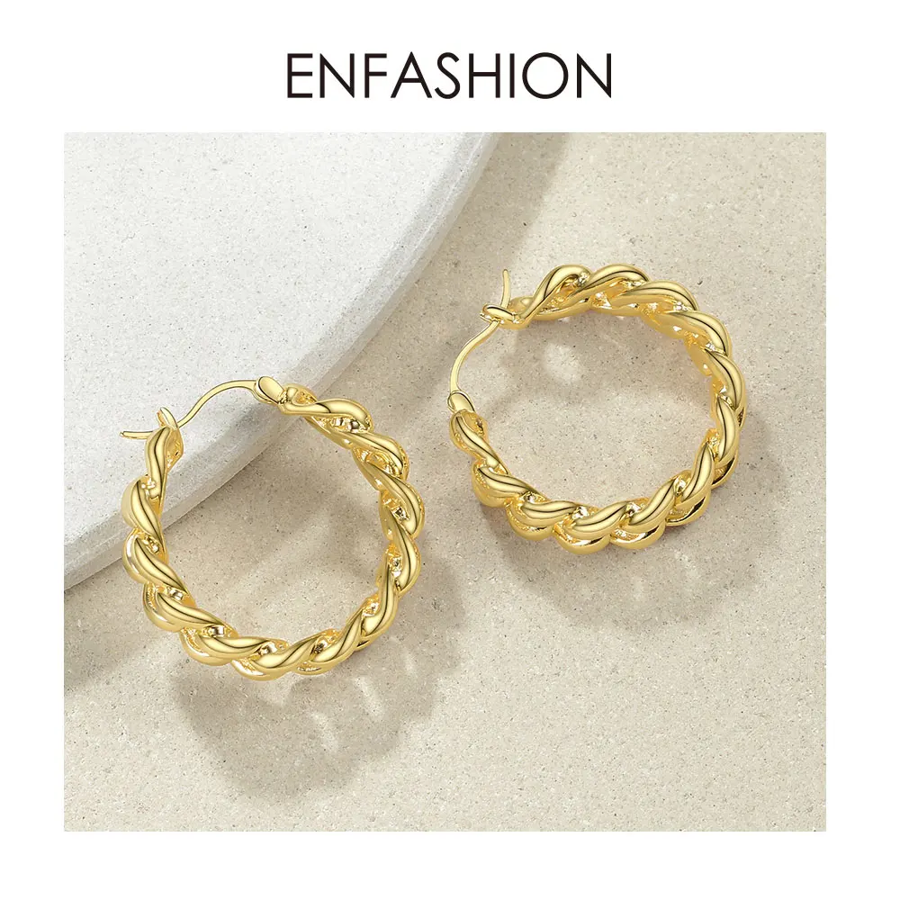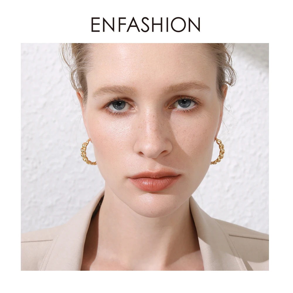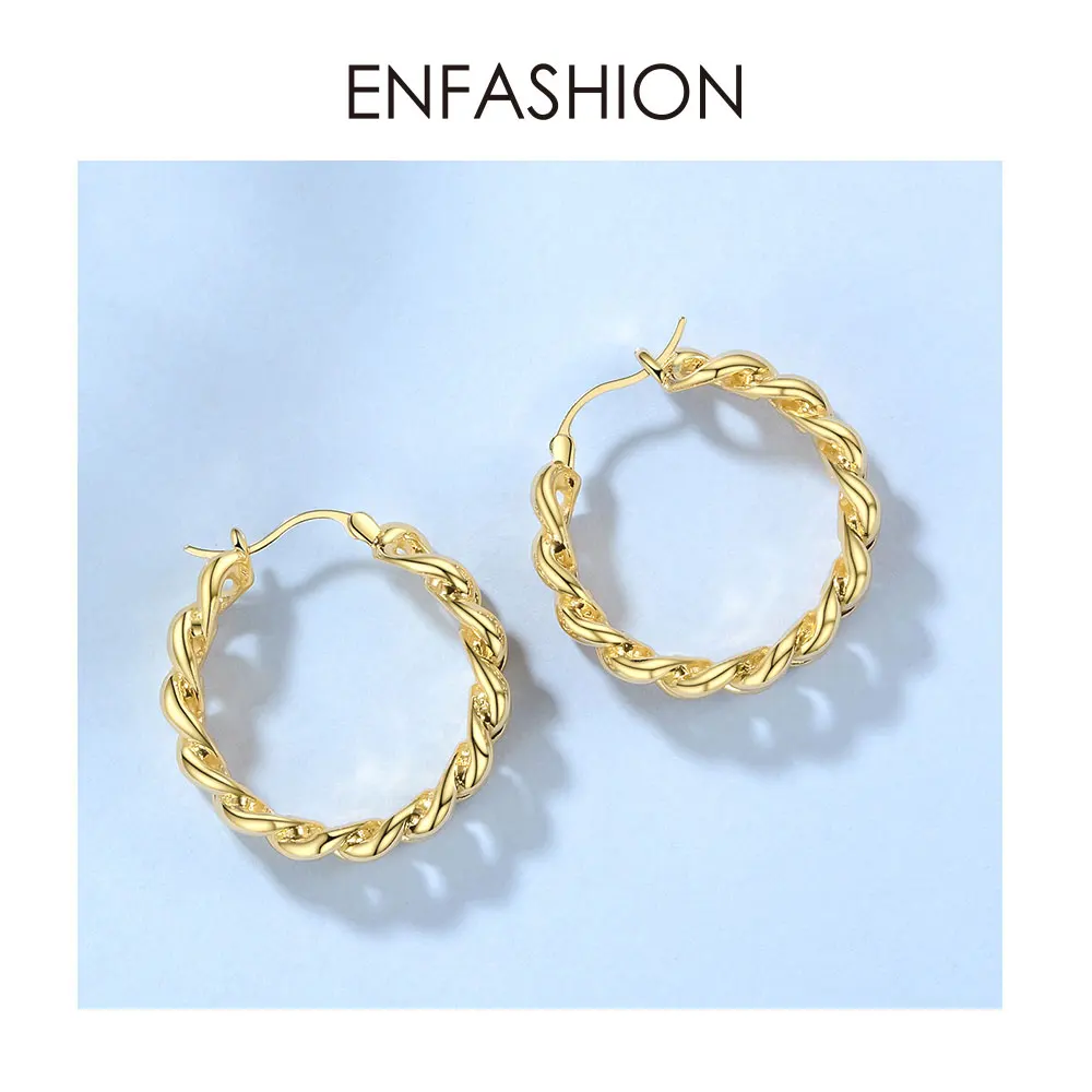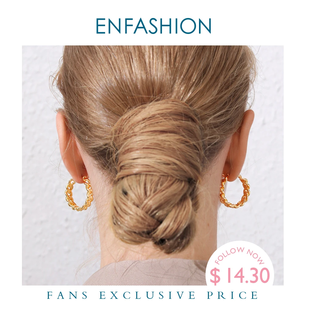 Женские маленькие серьги-кольца ENFASHION, круглые серьги золотого цвета в стиле панк с цепочкой, ювелирные украшения, E191088