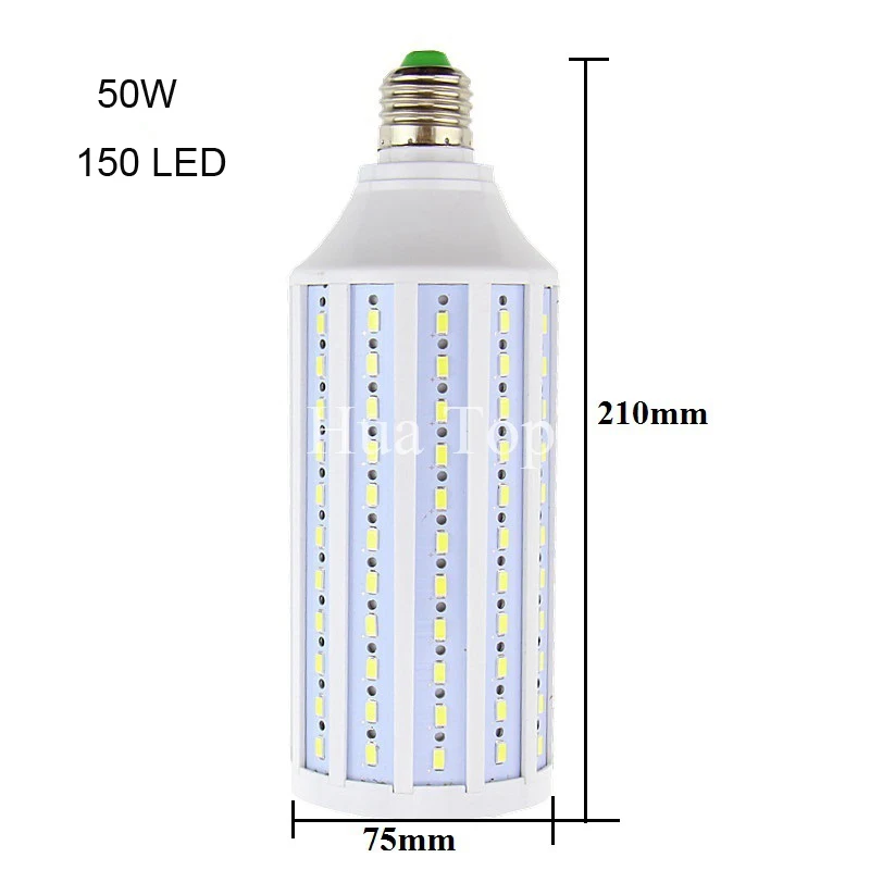 1. Светодиодный Тип: светодиодный светильник 2. Мощность: 50 Вт 3. Люмен: 90-100 лм/Вт 4. Напряжение: 110 В/220 В переменного тока 5. Светодиодный Количество: 150 светодиодный 6. Светодиодный чип: 5730 SMD 7. Светодиодный база: E27/E26/B22/E40 8. Цвет: теплый белый; Белый; Холодный белый 9. Цвет Температура Теплый белый: 2800K-3500K; Белый: 6000K-6500K; Холодный белый: 6500-7000K 10. Угол луча: 360 градусов 11. Материал корпуса: пластик 12. Рабочая частота: 50 ~ 60 Гц 13. Рабочая температура:-40 градусов ~ 60 градусов 14. Светодиодный срок службы:> 50000 часов