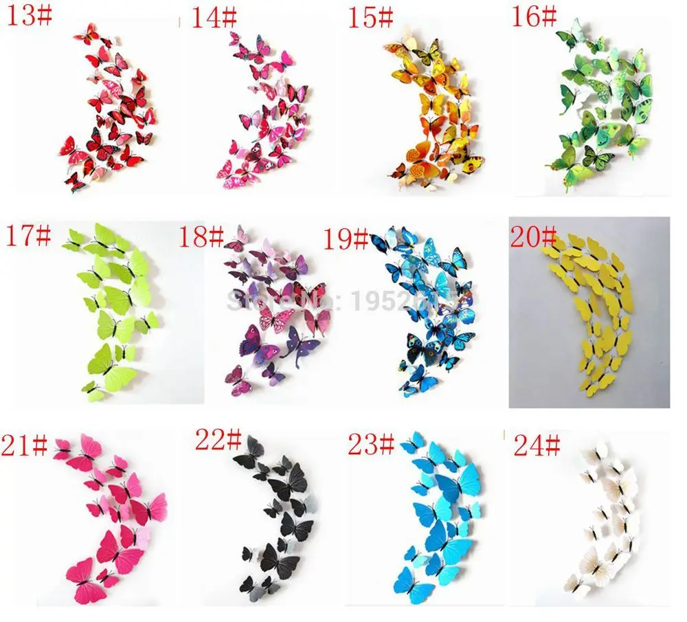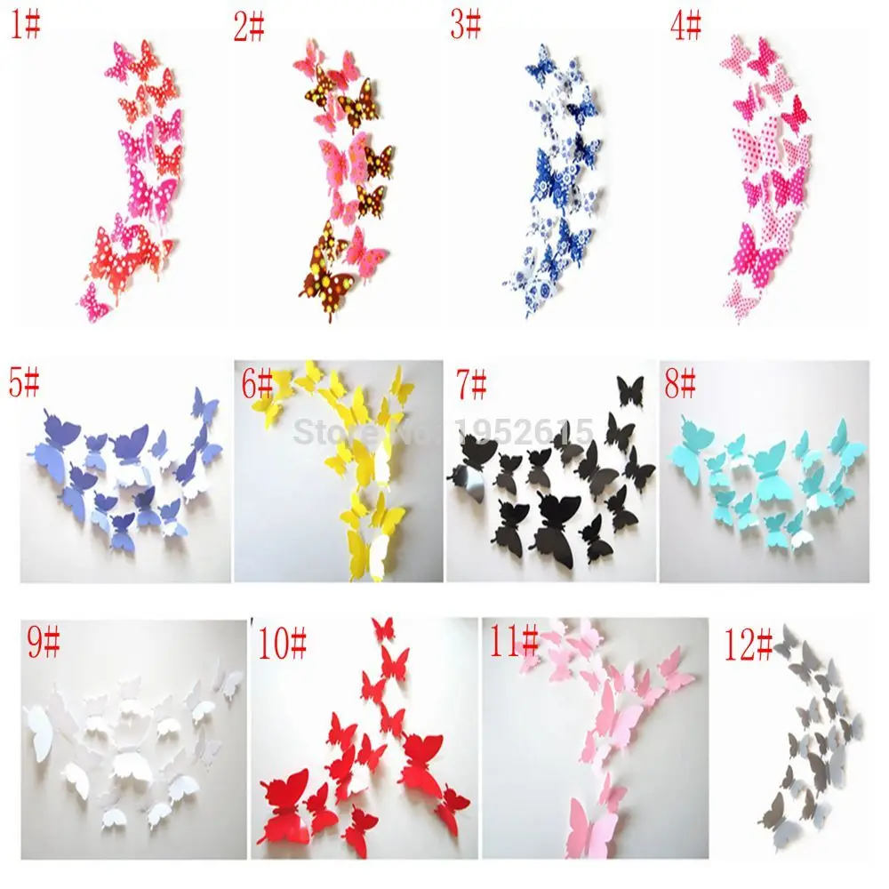 12 шт.лот ПВХ наклейки в виде бабочек, 3D наклейки на стену, домашний декор, постер для детской комнаты, наклейка на стену, украшение