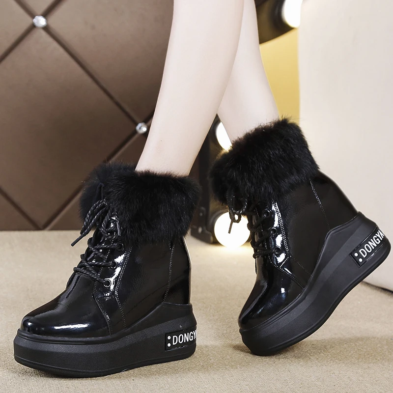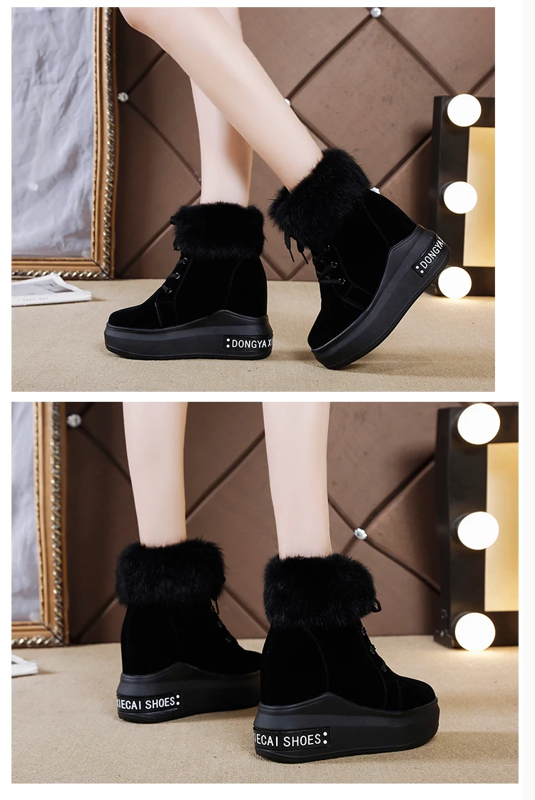 Женские ботинки на танкетке, теплые ботинки до щиколотки, осенне-зимние ботинки на высоком каблуке 2020 см, 10,5