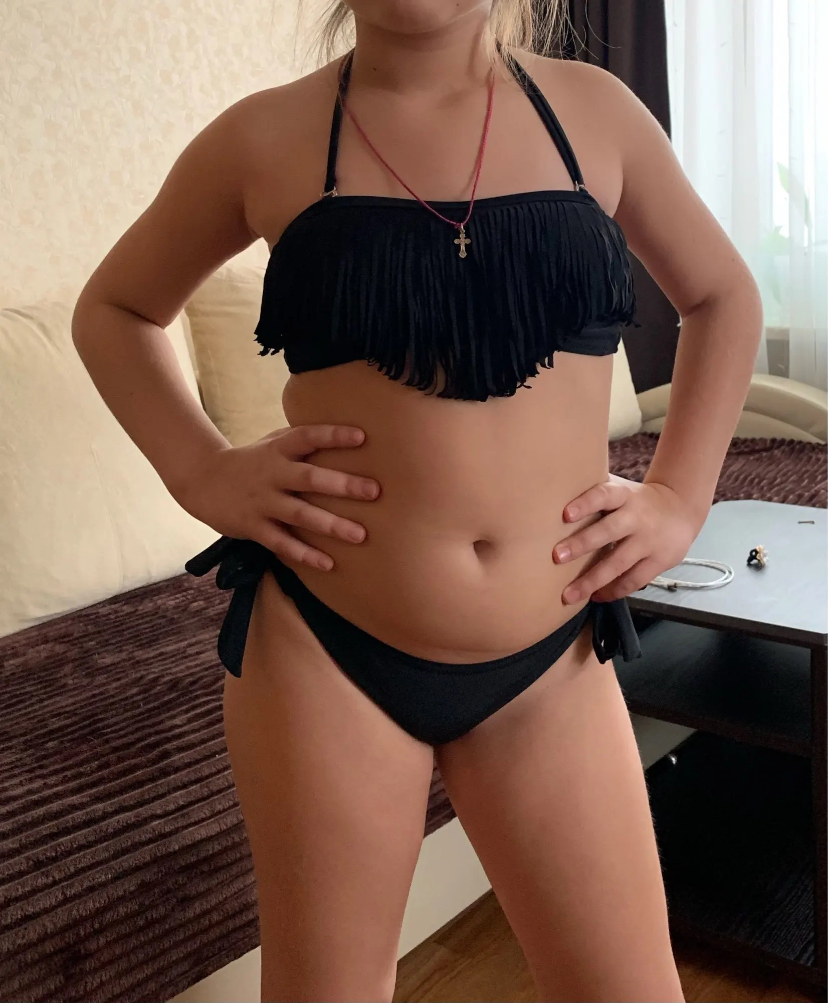 Невероятно крутой купальник просто отвал башки.Брала дочке черный с висюльками.Идеально просто!!!! Размер 11-12 на рост 140 на девочку весом 26 кг.стройная.