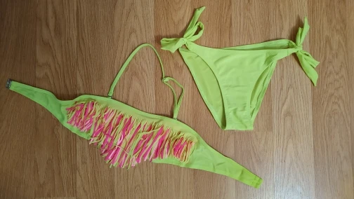 не довольная товаром,ждали долго ,а итог :цвет как ношенный уже ,есть пятна на лифе и плавках, на плавках нет пленки , по спору вернули 1$ с копейками ... за чем купальник спрашивается теперь с пятнами чужими...