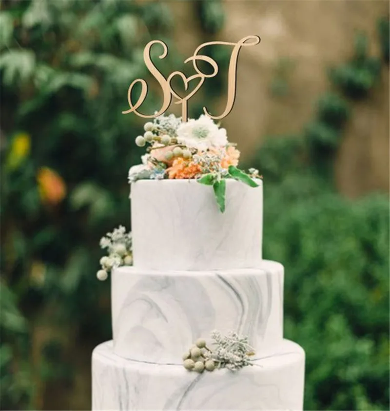 Пользовательские начальные буквы торт Топпер персонализированные имя свадебный торт Топпер деревенский Свадебный декор свадебные подарки