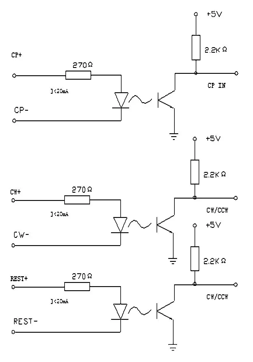 5.CP +,CP -: шаговый импульсный вход + 5 В (эффективный восходящий край, длительность роста> 10US)