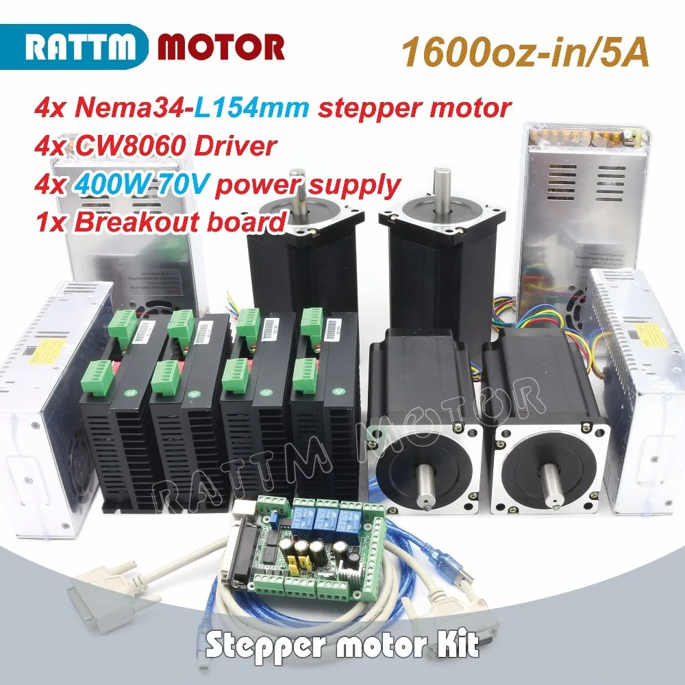 RU корабль, 4-осевой, фотоэлемент, шаговый двигатель Nema34, 1600 унций-дюйм, 12 нм, 154 мм, двойной вал и драйвер, 80 В постоянного тока, 6 А и 400 Вт, 70 в, источник питания