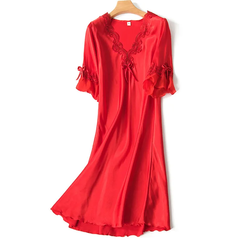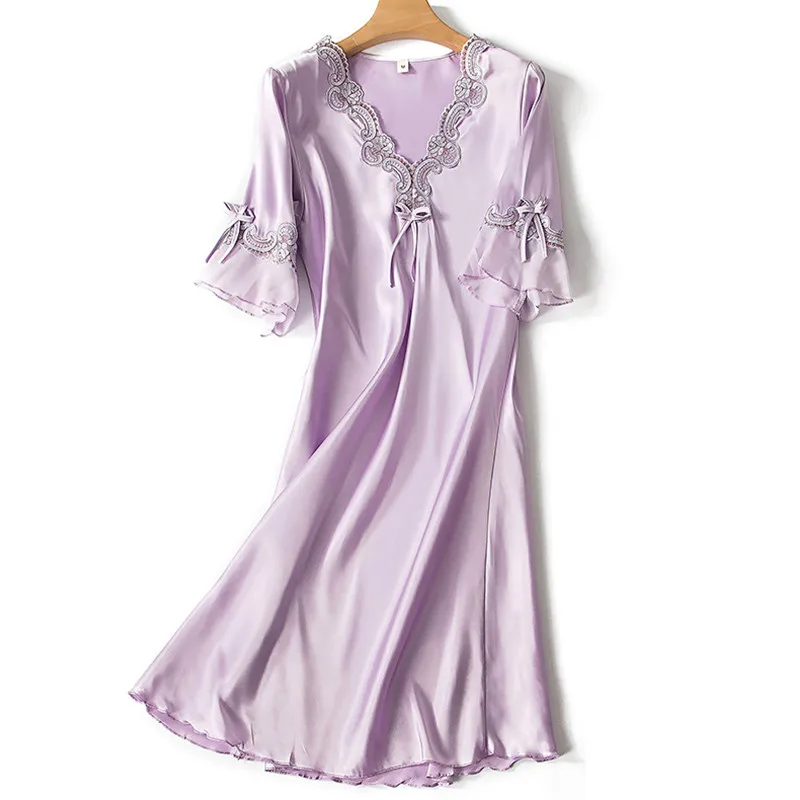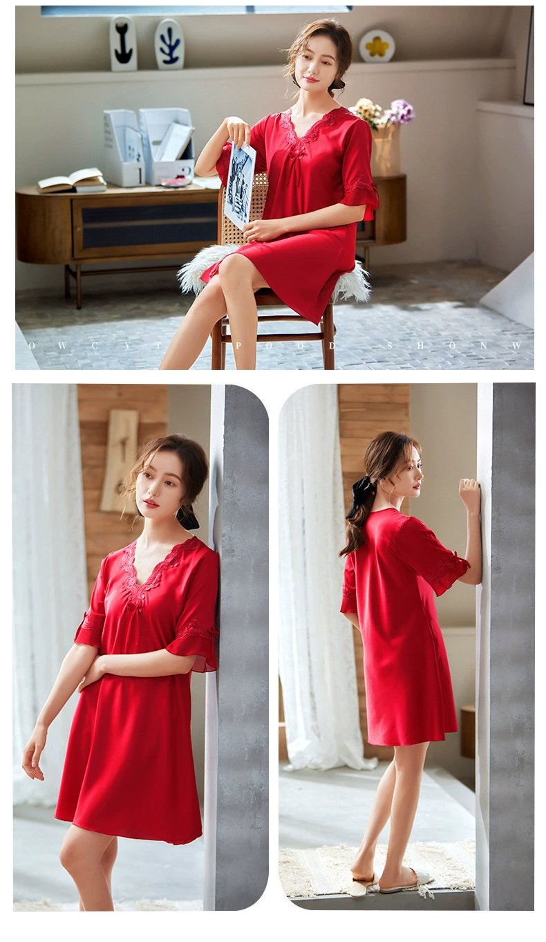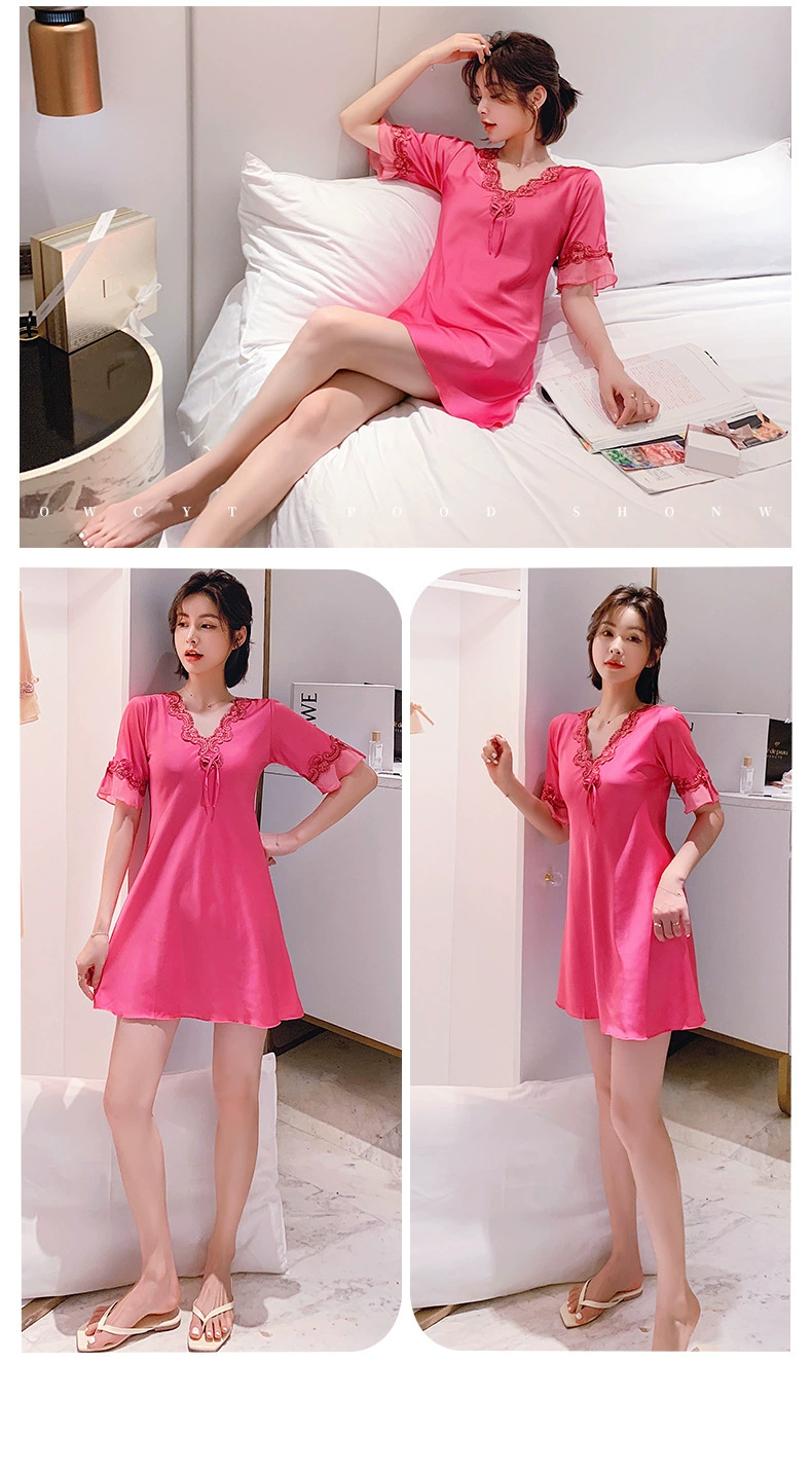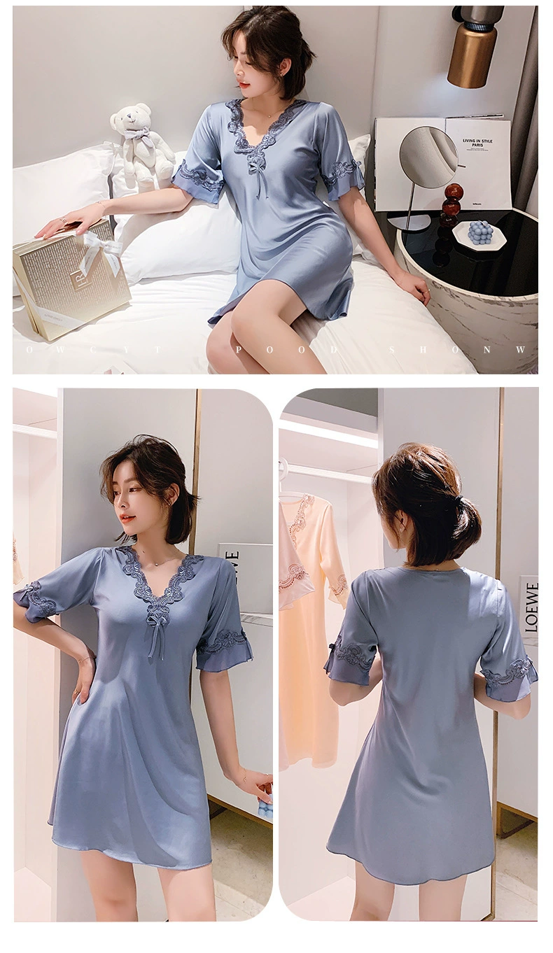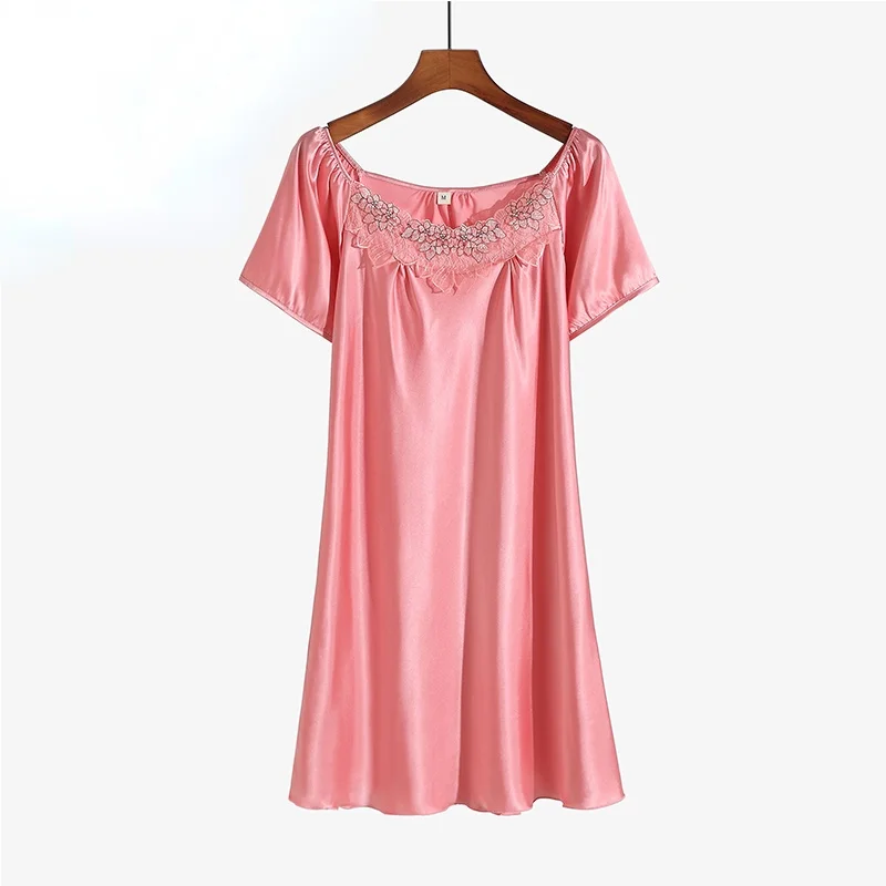 Кружевная ночная рубашка из ледяного шелка с коротким рукавом, для дома, сексуальная ночная рубашка, ночная рубашка, лето размера плюс 4XL
