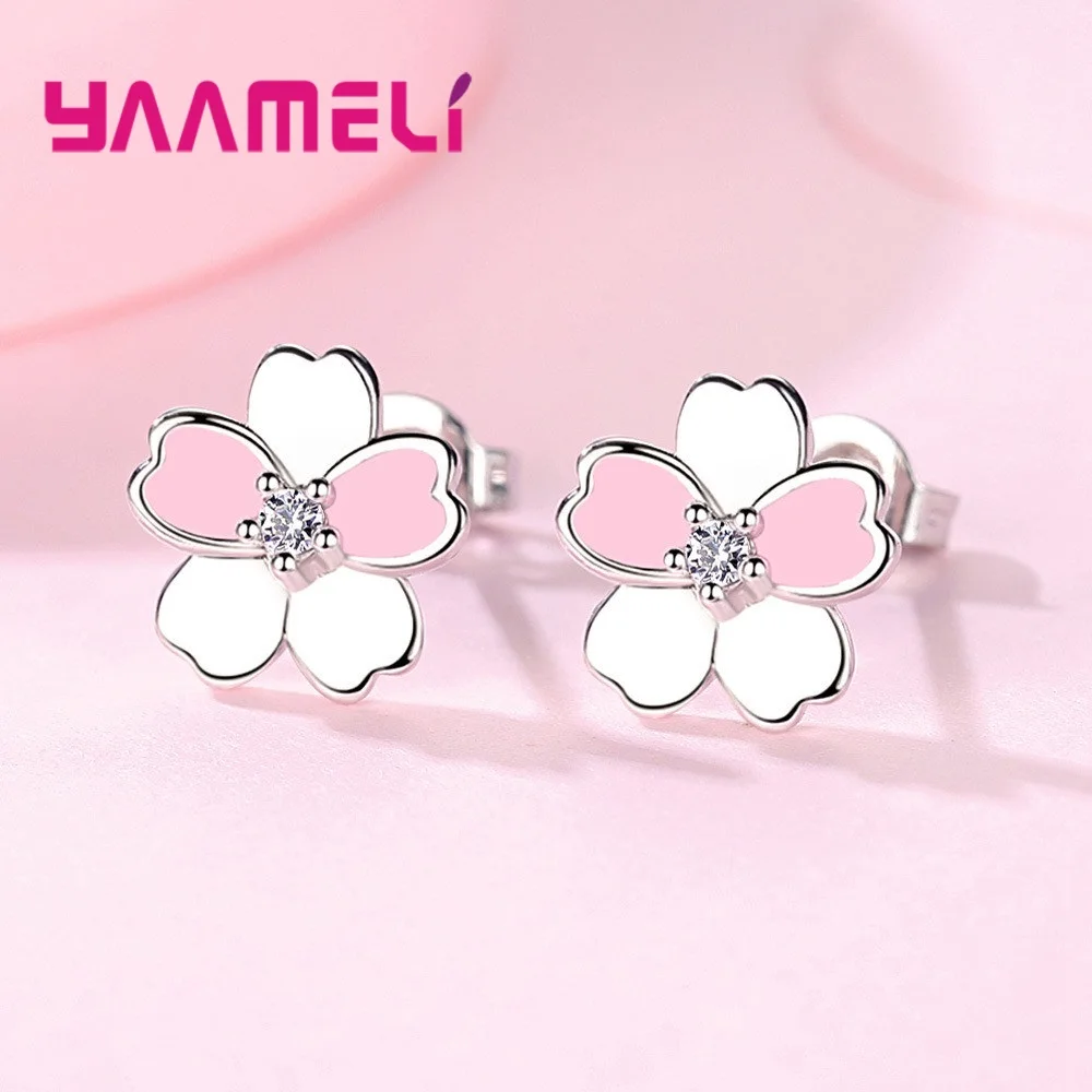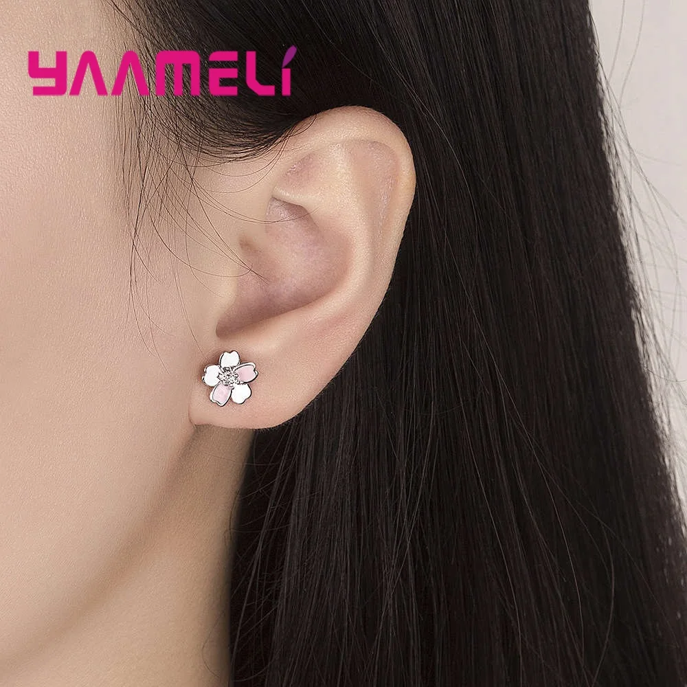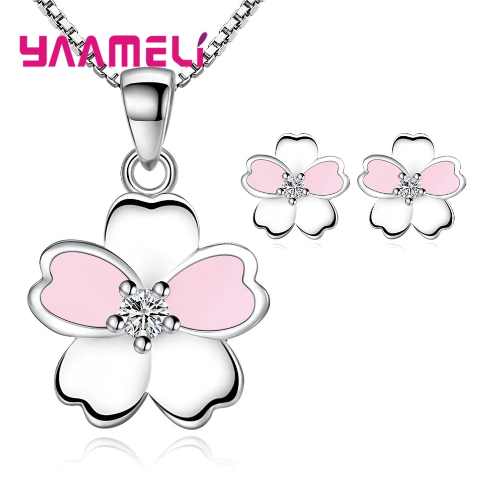 Наборы ювелирных изделий из стерлингового серебра 925 пробы для женщин и девочек, ожерелье с кулоном в виде сакуры, серьги-гвоздики, женская бижутерия