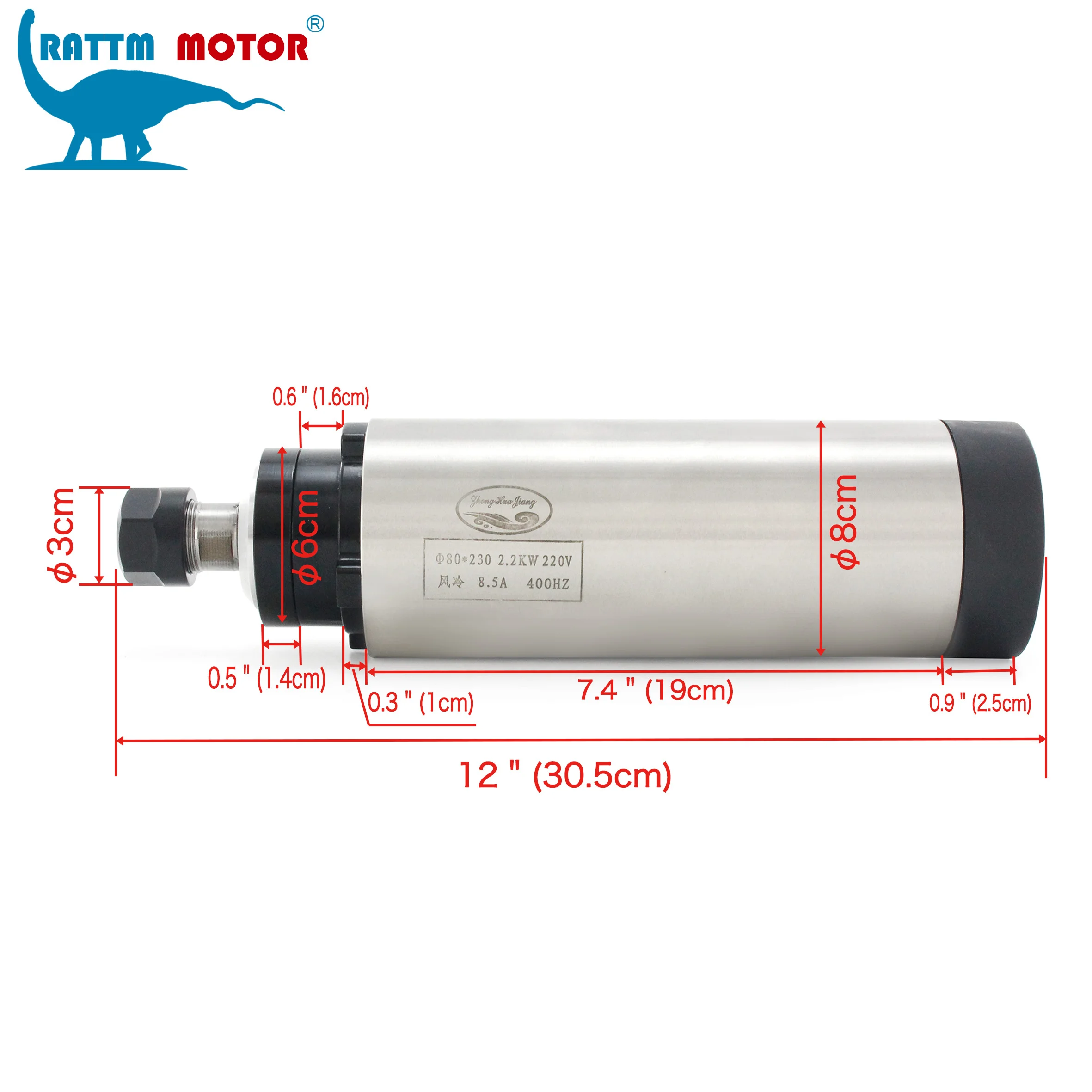 1x2.2 кВт шпиндель с воздушным охлаждениемER20,220 В, 24000 об/мин, 80x230 мм, 4 подшипника, 400 Гц