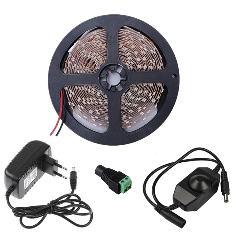 Светодиодные ленты светильник 5 м 300 светодиодов 12V гибкие светодиодные ленты с блоком питания постоянного тока 12V 1A Мощность адаптер Светодиодный диммер переключатель красные, синие зеленый белыйтеплый белый