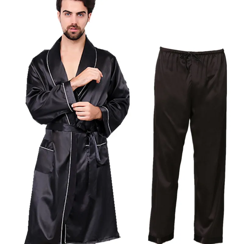 Домашний Шелковый пижамный комплект из двух предметов, платья Брюки, халат и шорты, 7XL-M, пижама с длинным рукавом для мужчин, кимоно, мягкий уютный банный Халат