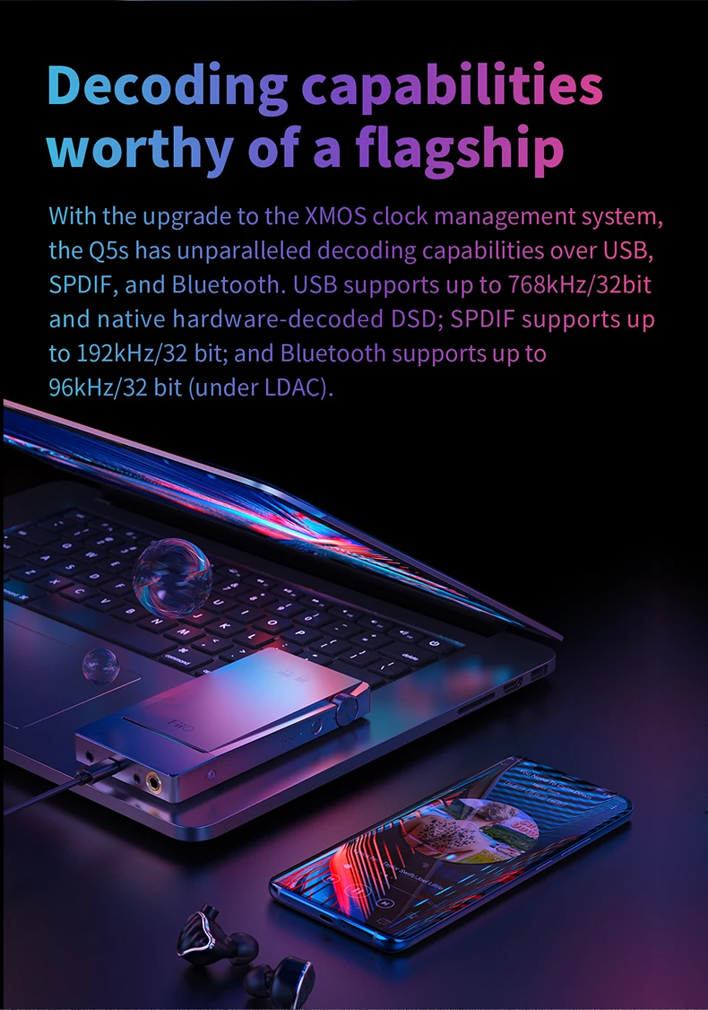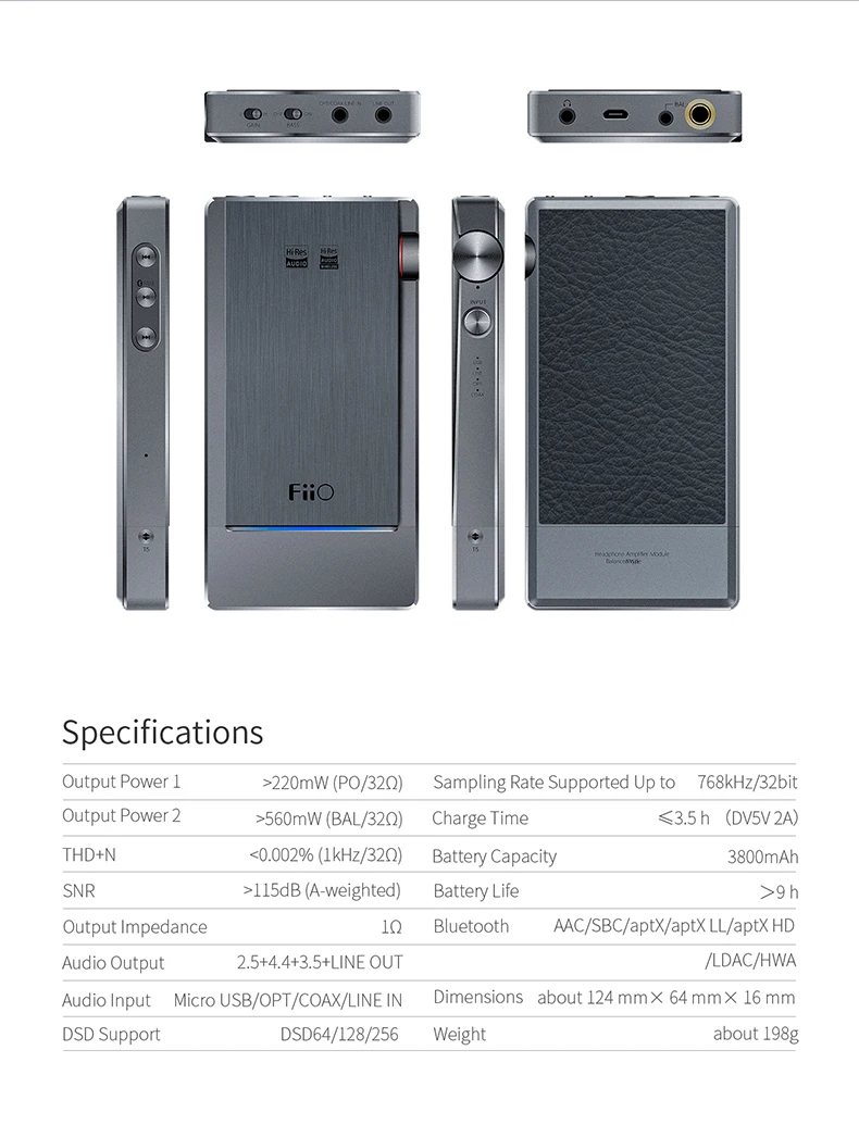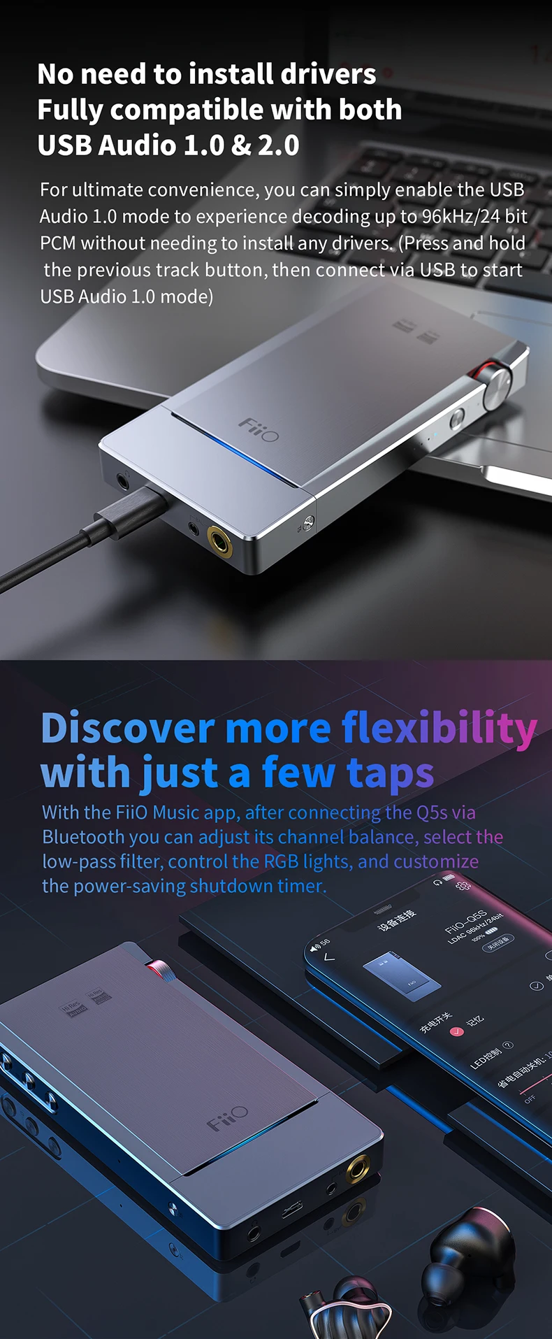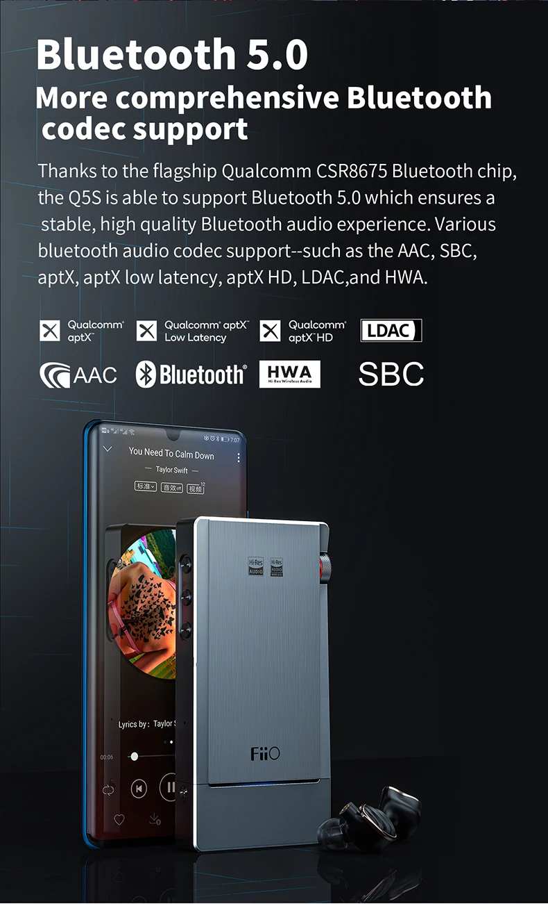 ЦАП-усилитель FiiO Q5s, Bluetooth 5,0, DSD256 PCM, 768k32 бит