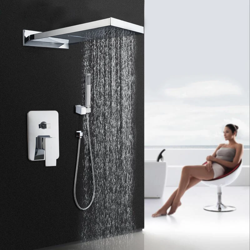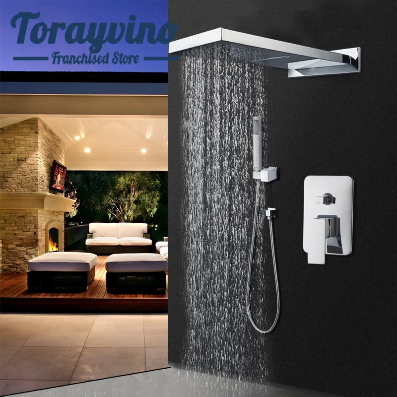Душевая система Torayvino, золотистая и хромированнаяЗолотистая прямоугольная Душевая система ВодопадДождь с насадкой, горячий и холодный смесители