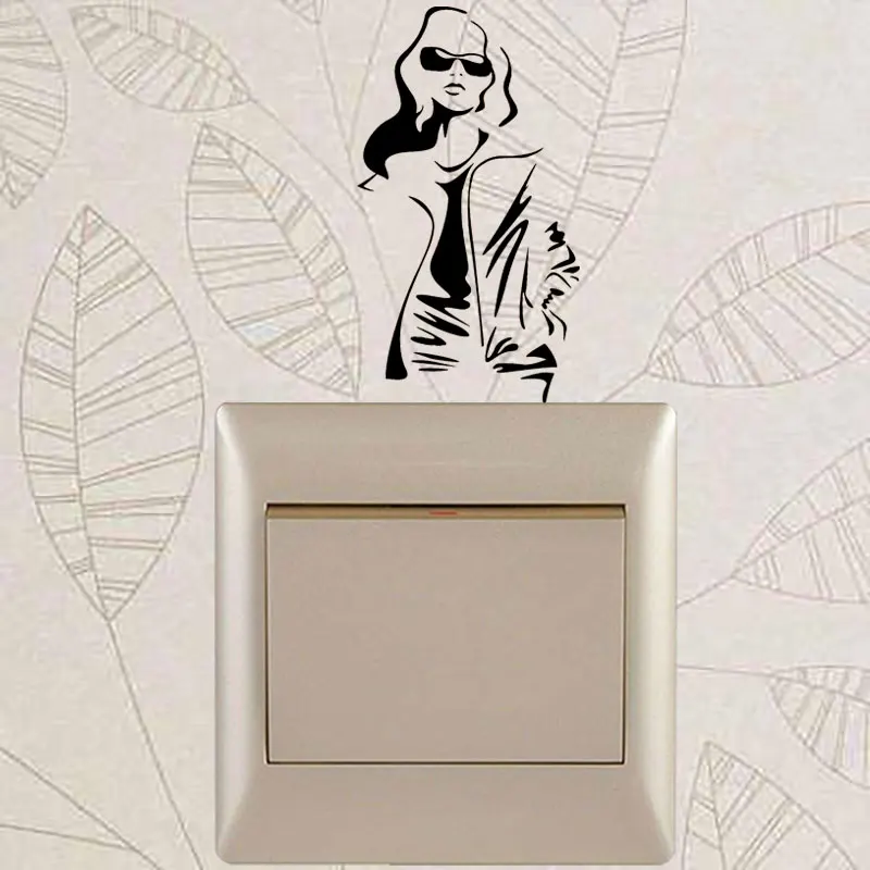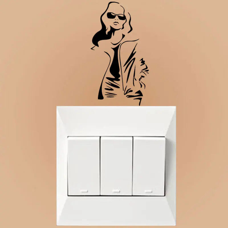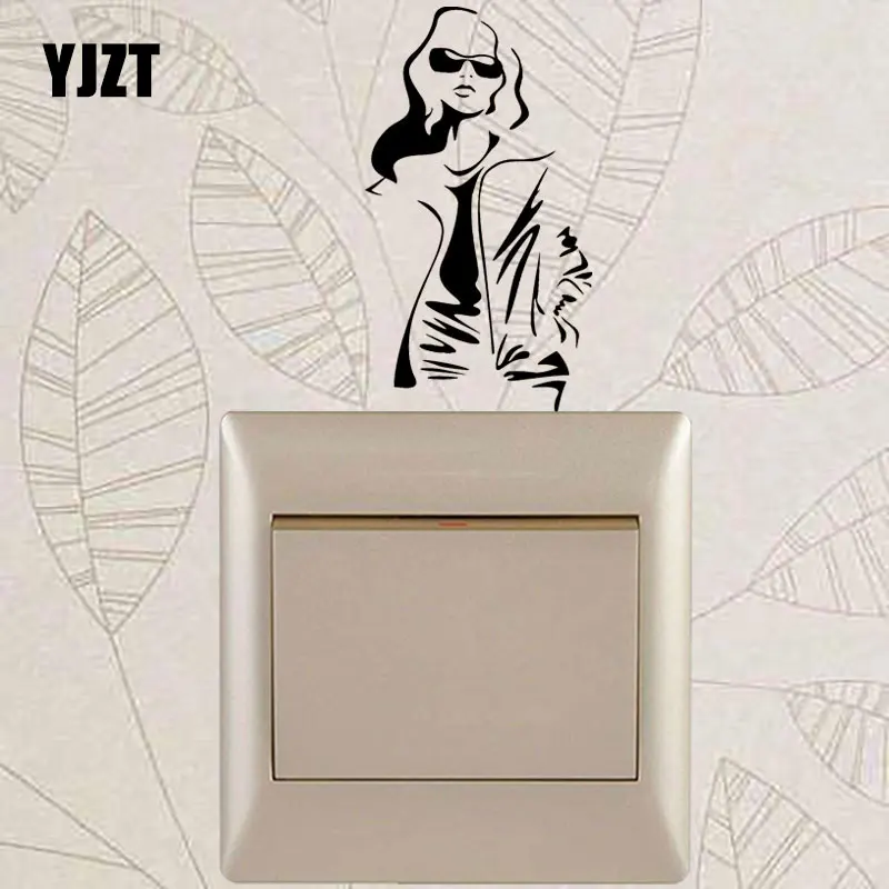 YJZT модная модель в очках горячая девушка в пальто наклейки на стену выключатель света Декор наклейки художественная роспись девушка комната 8SS-2676