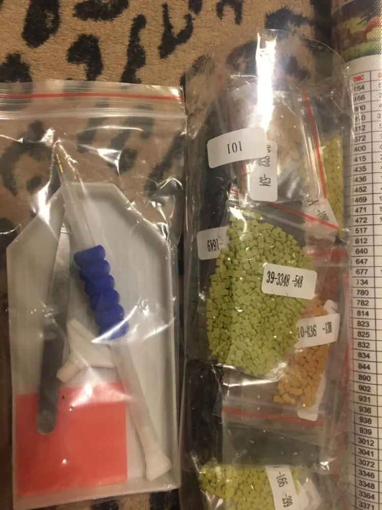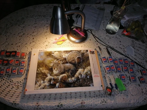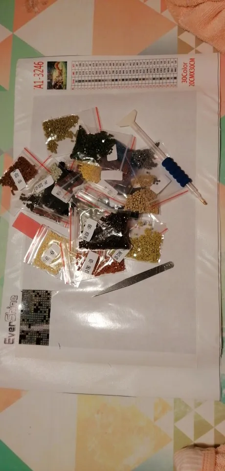 Заказ пришол очень быстро 2 недели до РО.Продавец умничка ,запаковано очень хорошо.Все цвета и инструменты на месте.Начала выкладку картины.Очень увлекательно.Как закончу постараюсь дополнить.Стразики хоть и пластмас но все равно блестят.Я довольна.