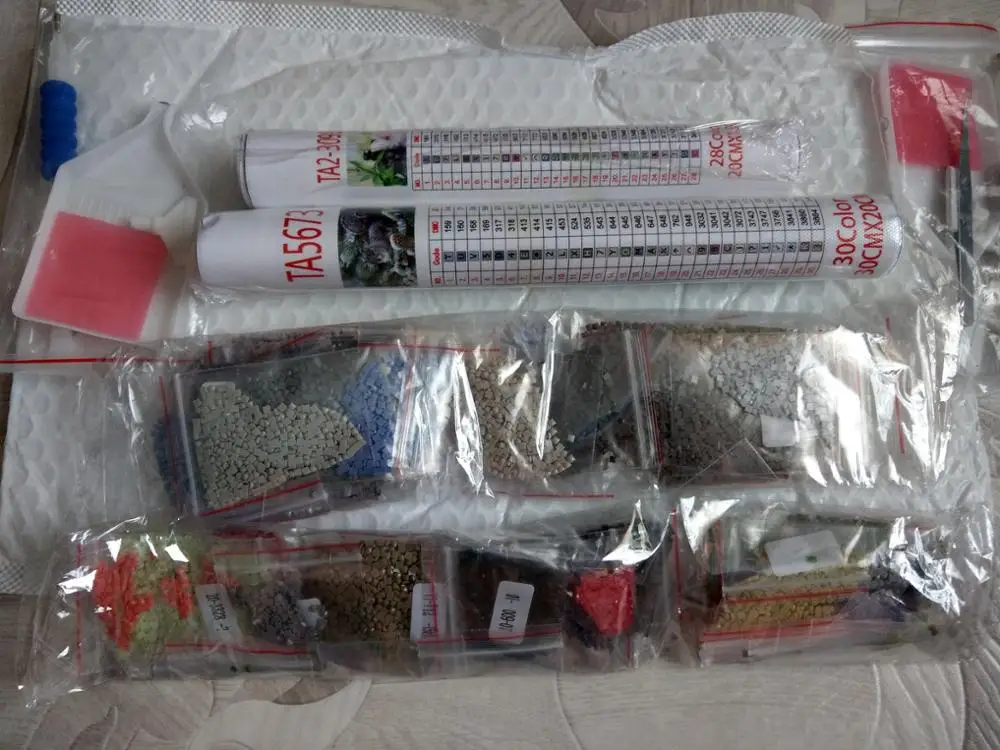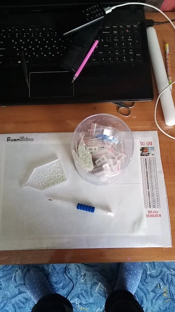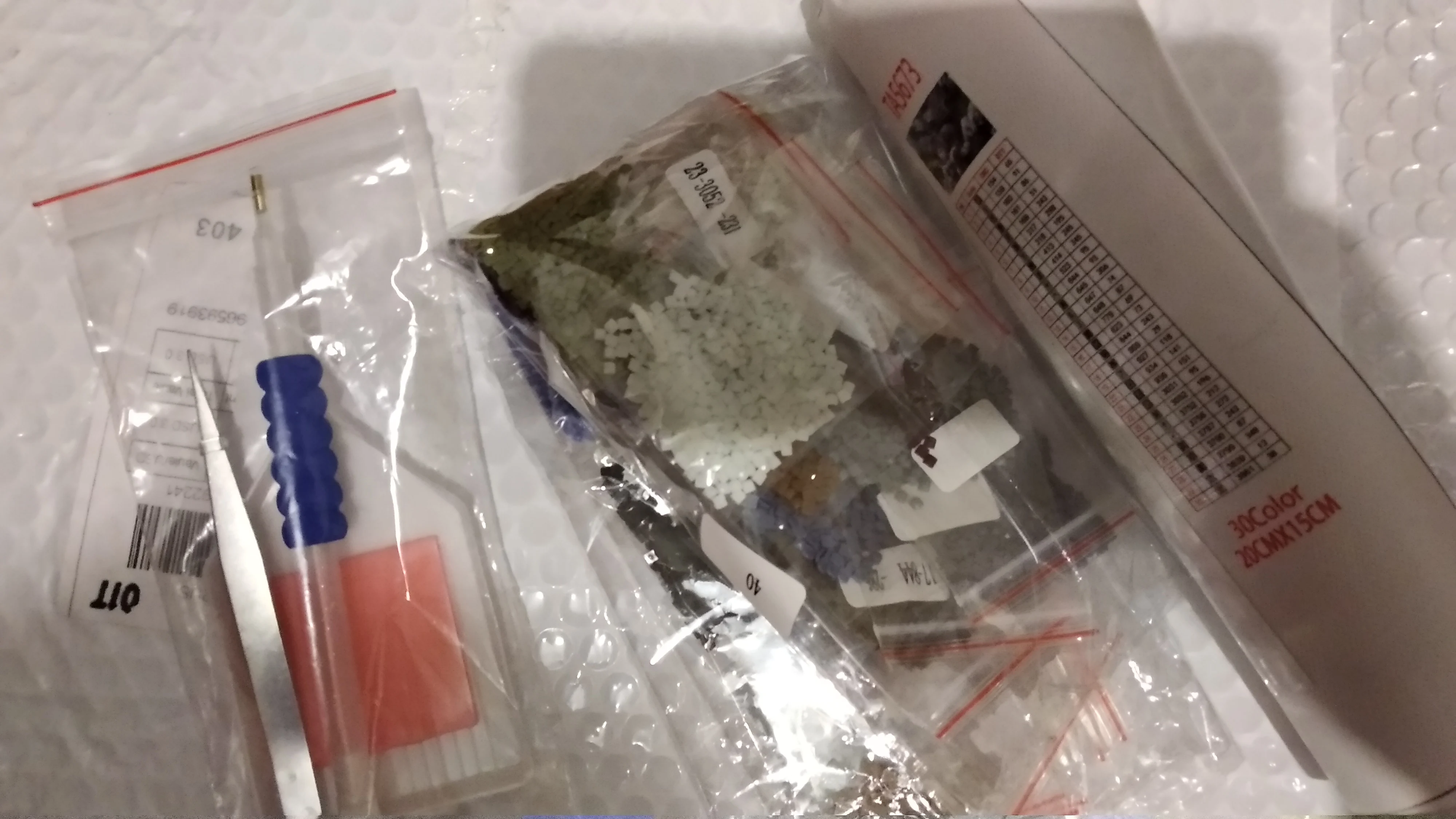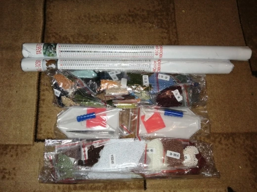 Заказ получили быстро. Упаковано аккуратно. В комплекте стилус без насадок, лоток, масса для выкладки. Количество страз соответствует количеству заявленных цветов на картине. Пропечатка рисунка чёткая, символы хорошо видны. Данного продавца рекомендуем.