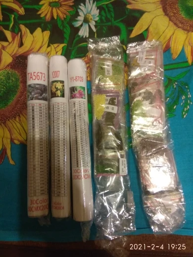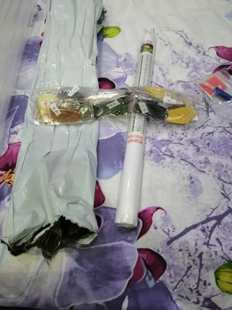 Все отлично, холст намотан на мягкий валик значит заломов не будет, ура. Стразы упакованы в зиппакеты - это очень удобно, их количество соответствует заявленному. Набор инструментов стандартный - корытце, стилус с мягкой накладкой, пинцет и клей. Брала дочке в дополнение к подарку на новый год. Доставка до Владимира 2 недели.