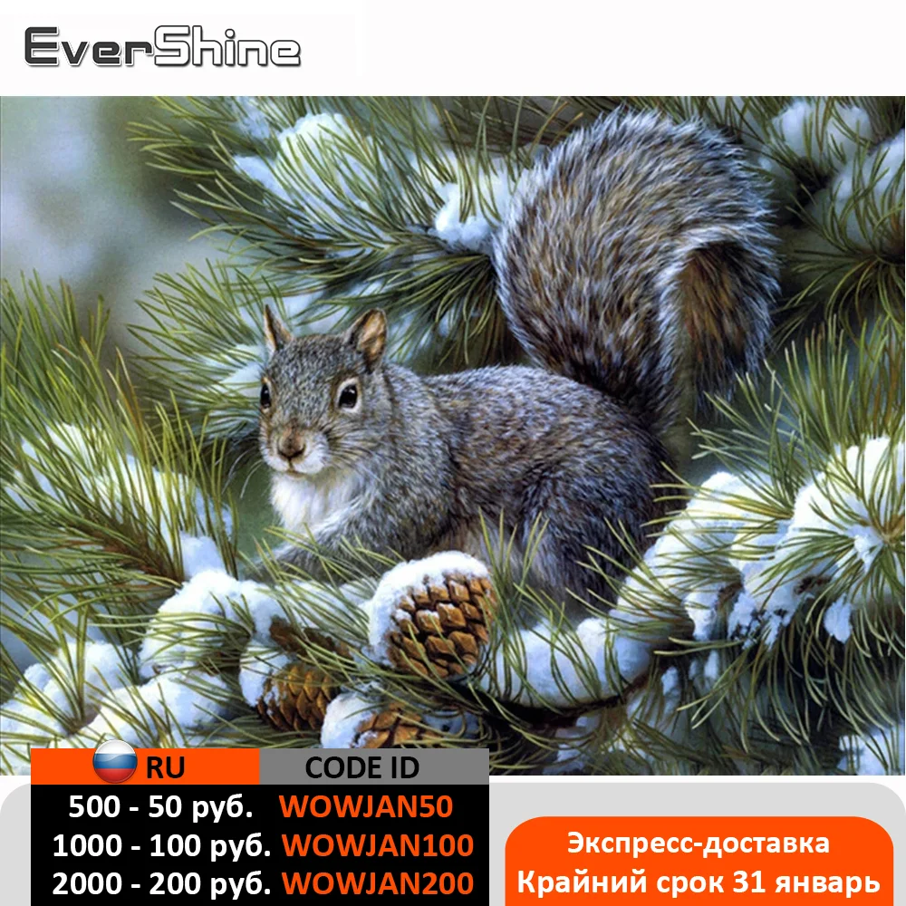 Алмазная живопись животные, белка с квадратными стразами Evershine, пейзаж для вышивки крестиком, домашний декор