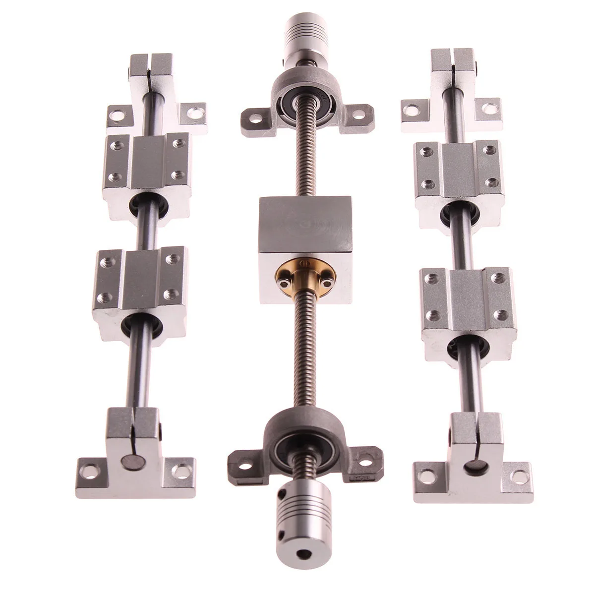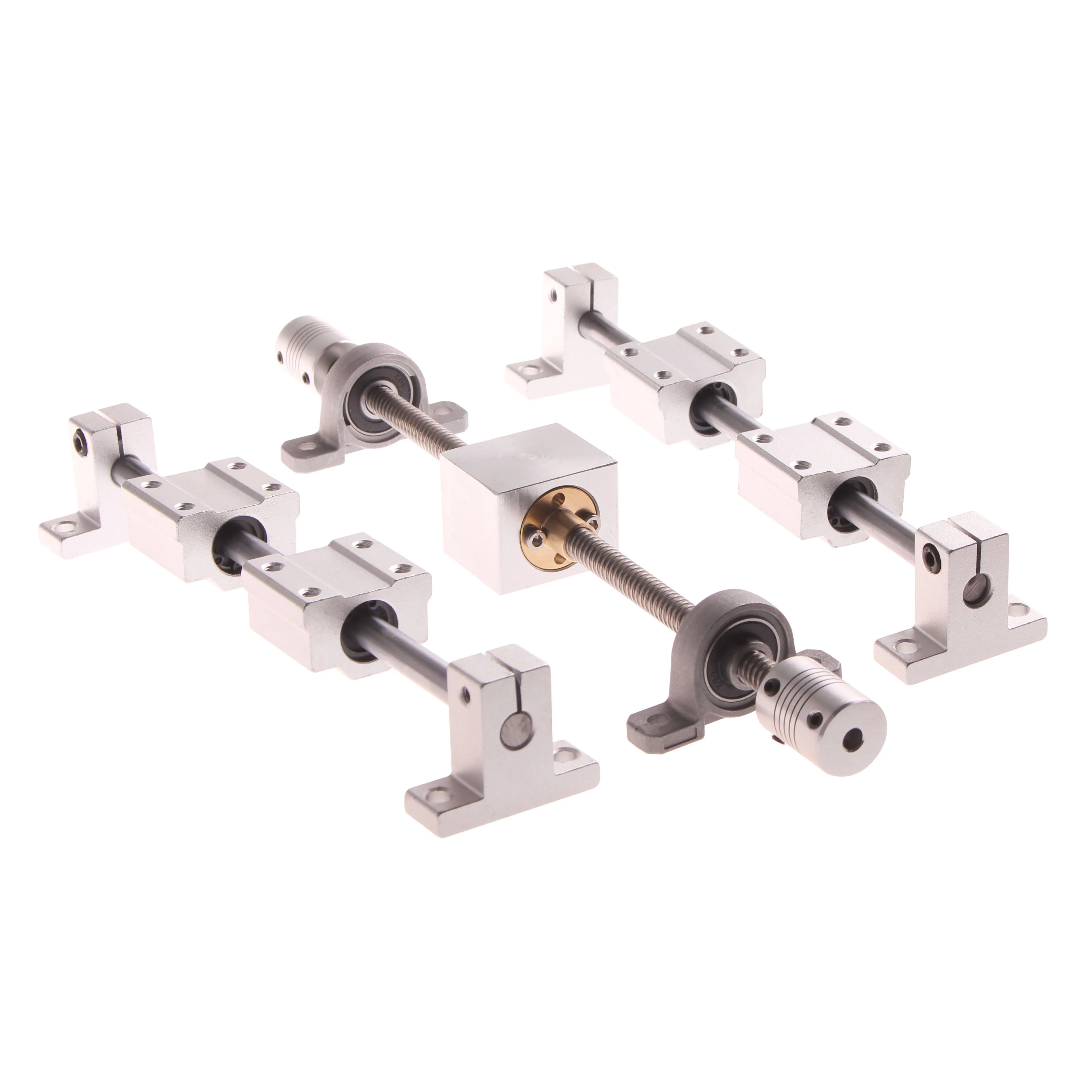 550 мм комплектация:1 шт. T8 свинцовый винт и Латунная гайка 550 мм шаг 2 мм свинец 8 мм + 1 шт. гайка Корпус кронштейн + 2 шт. кронштейн KP08 + 2 шт. муфта D19L25 + 2 шт. оптическая ось 8x500 + 4 шт кронштейн SK8 + 4 шт SCS8UU