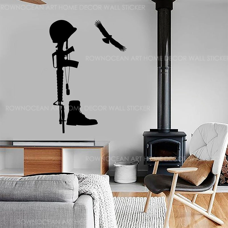 Наклейка на стену военный солдат армейская винтовка мужество стрель...