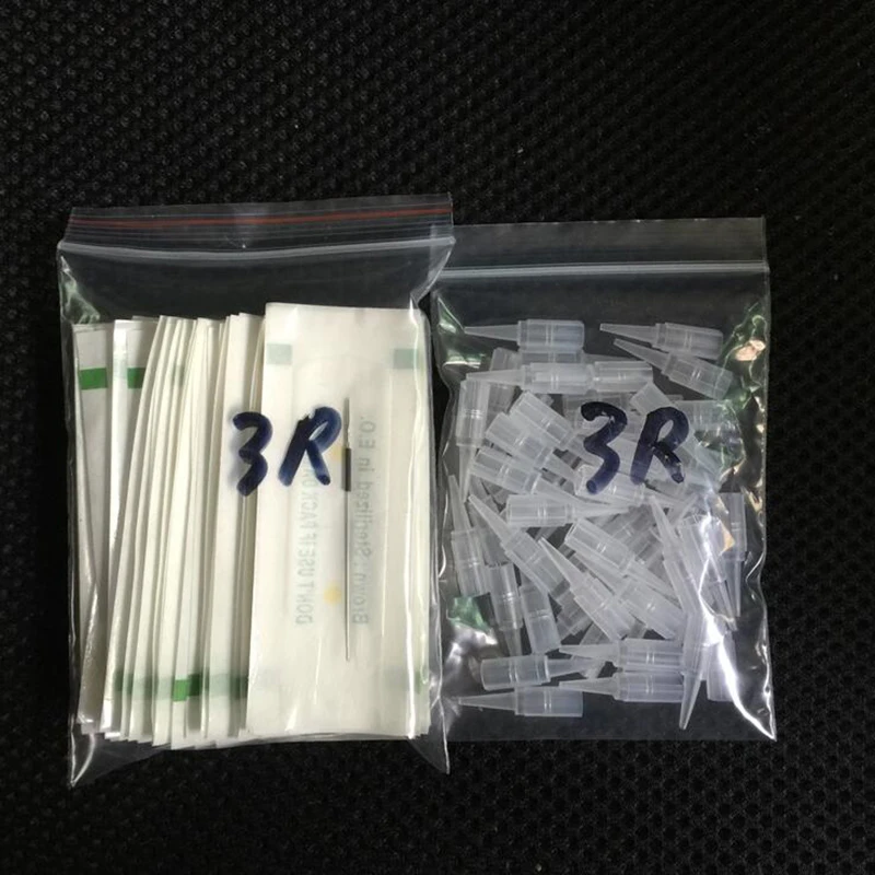 50 шт. 3RL иглы и 50 шт. является своего рода автоматической крышки иглы для перманентного макияжа бровей подводка для глаз губы татуировки