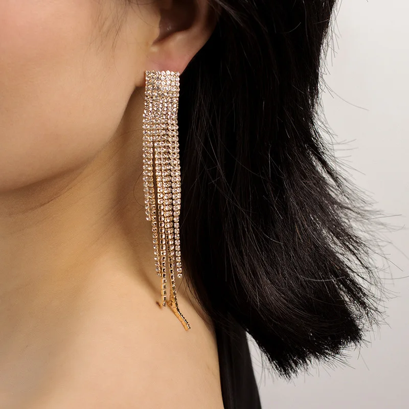 Модные Преувеличенные длинные Стразы с кисточками, серьги, блестящие серьги-гвоздики для женщин, модные ювелирные изделия