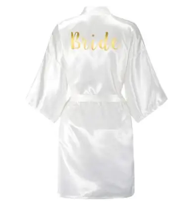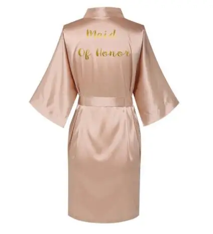 Атласный Шелковый Свадебный халат для невесты, цвета розового золота