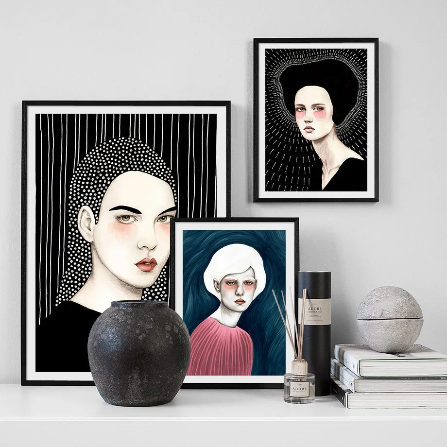 Простые абстрактные постеры с изображением девушки и мужчины и лица...