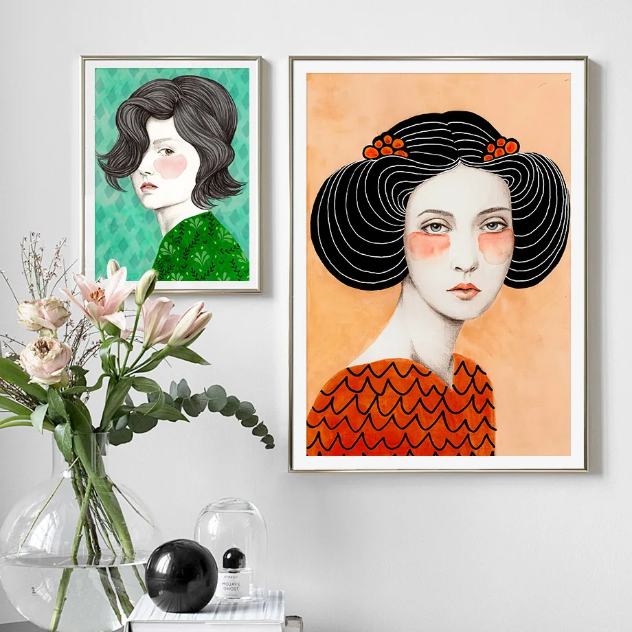Абстрактная Мода винтажная девушка Минималистичная настенная живопи...