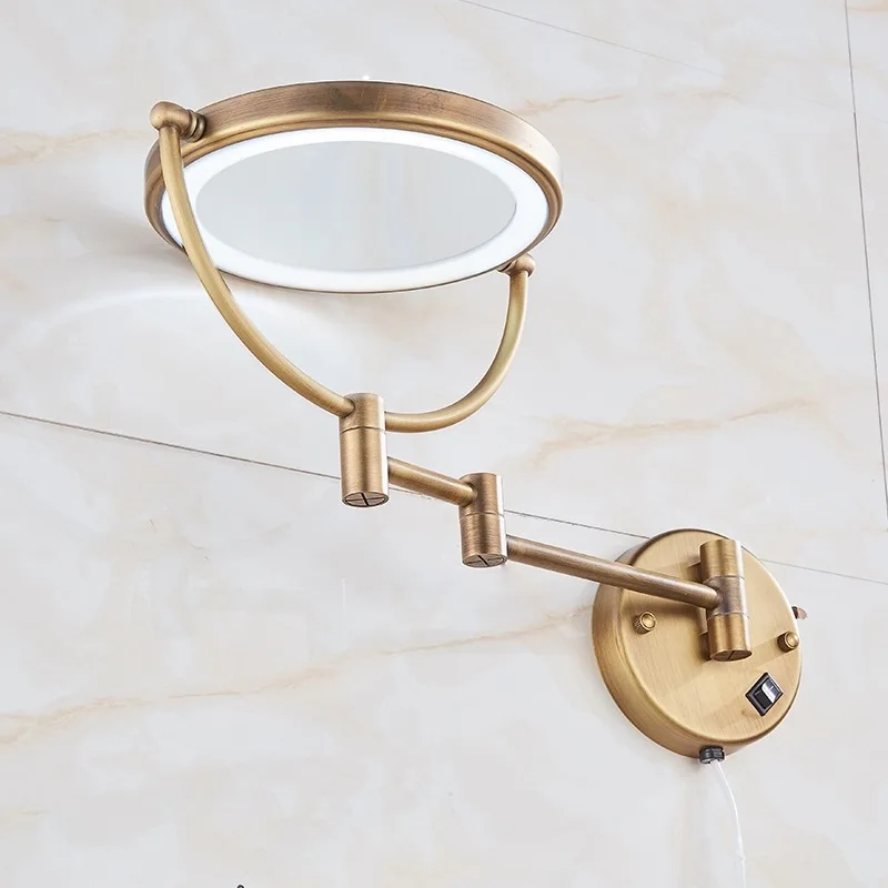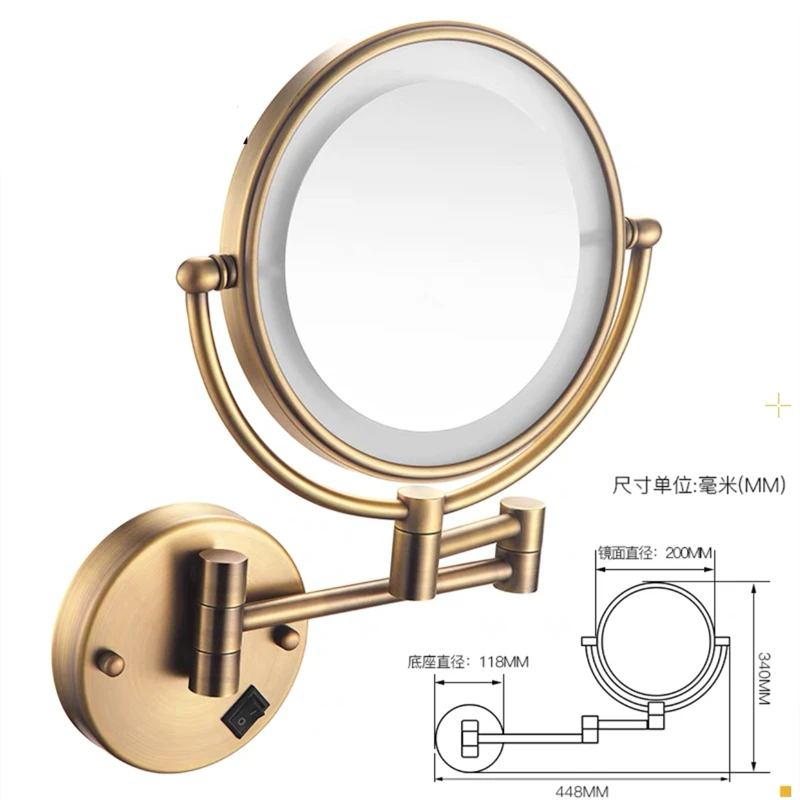 Зеркало для макияжа LIUYUE, античное Латунное зеркало для ванной, 8 дюймов, со светодиодный светильник кой, складное зеркало для макияжа, увеличительное зеркало, с 3-кратным увеличением