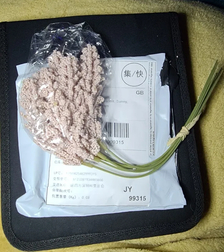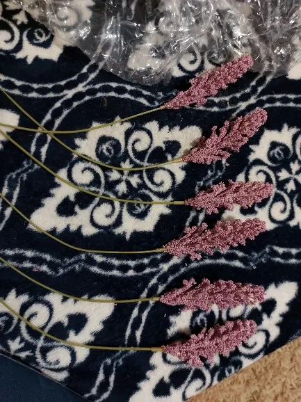 Цветочки дошли быстро, упакованы в пупырчатый пакет, согнутые пополам. Дошли отлично, ничего не сломалось, не обсыпалось. Продавцу спасибо за быструю отправку. Цветочки интересные для интерьера, советую к покупке.