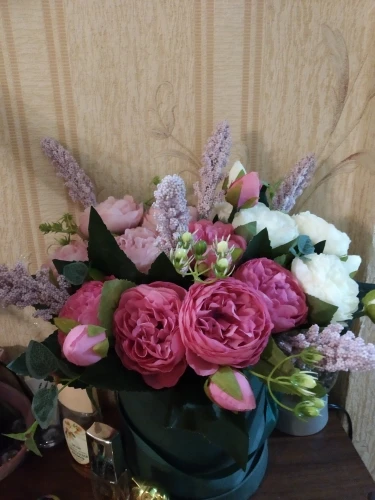 Большое спасибо за цветочки!Очень понравился букет-аккуратный,без клея и мохристых листьев-всё качественно и смотрится дорого.Посылка до Моск.обл.шла 2 месяца.-гуляла по России.Если бы сама не спросила случайно на Почте,то так и не дождалась бы уведомления,поскольку продавец отправил без отслеживания и не было возможности контролировать.