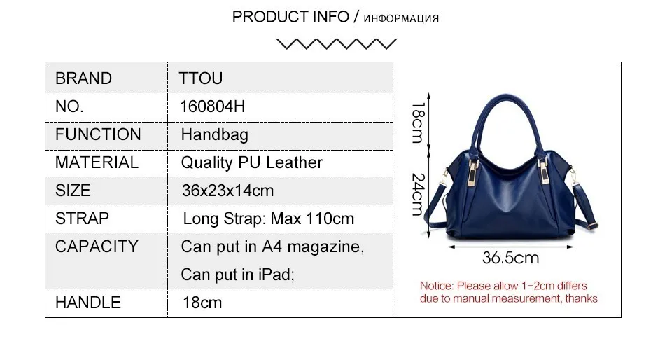 Дизайнерская дамская сумочка TTOU из качественной кожи, однотонные Офисные Сумки-тоуты на плечо
