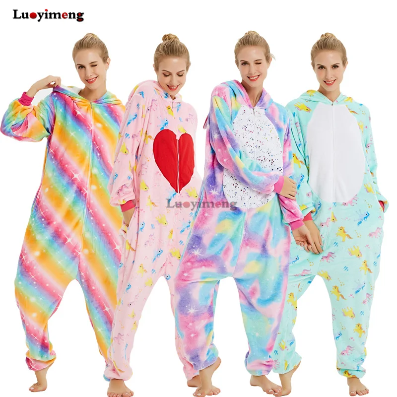 Пижама-Кигуруми для взрослых с мультяшным принтом, зимняя пижама в виде единорога, комбинезон для женщин, пижама в виде ститча, комбинезон в стиле унисекс