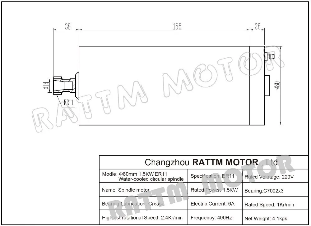1x1,5 кВт шпиндель с водяным охлаждением(ER11,400 Гц, 24000 об/мин, 4 подшипника)(ЕС поставляет 220 В Тип, США поставляют 110 В Тип, следуйте вашему выбору)