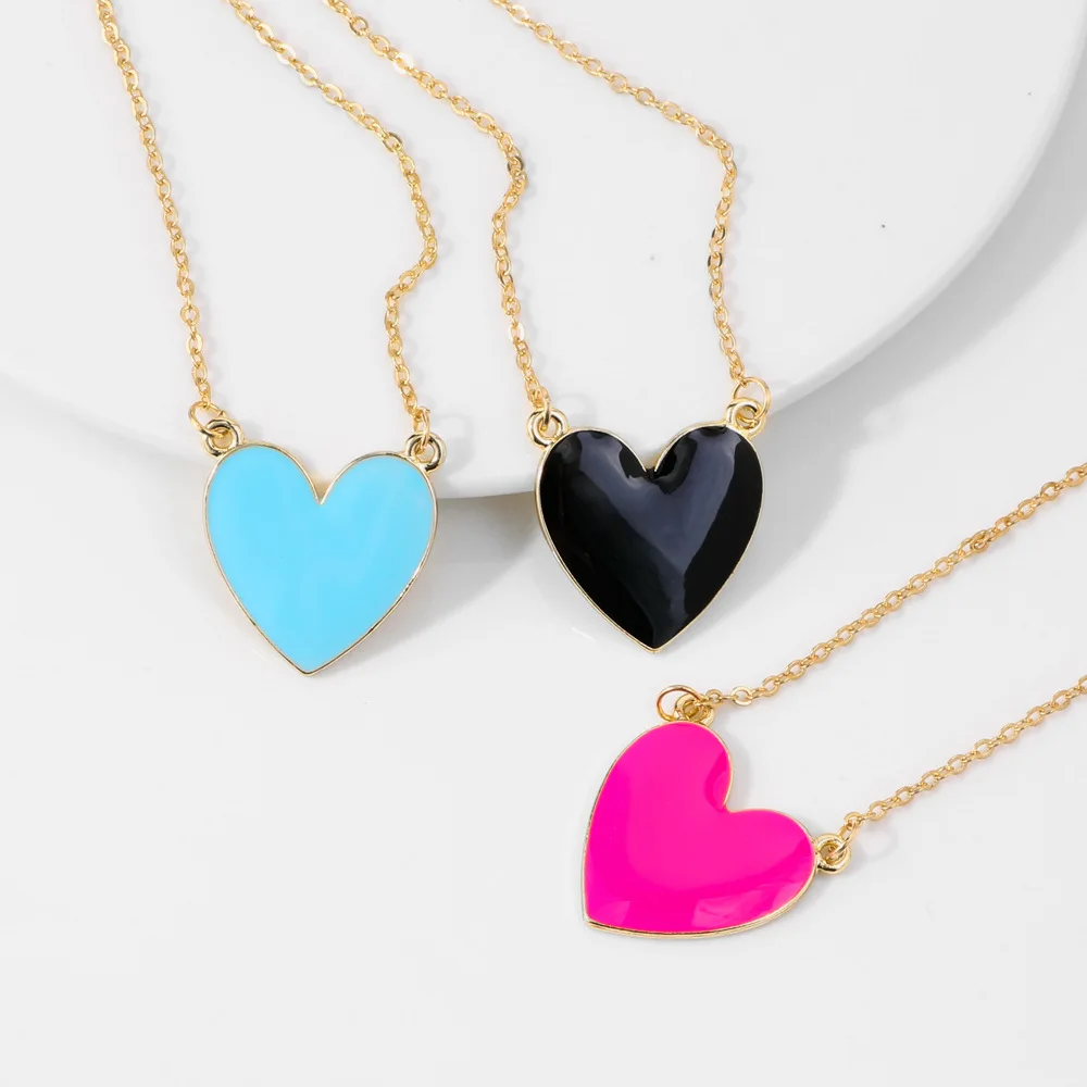 Корейская эмалированная Красная любовь ожерелья с фигуркой сердца простая Золотая цепочка глазурь черное синее сердце кулон ожерелье для женщин ювелирные изделия в подарок