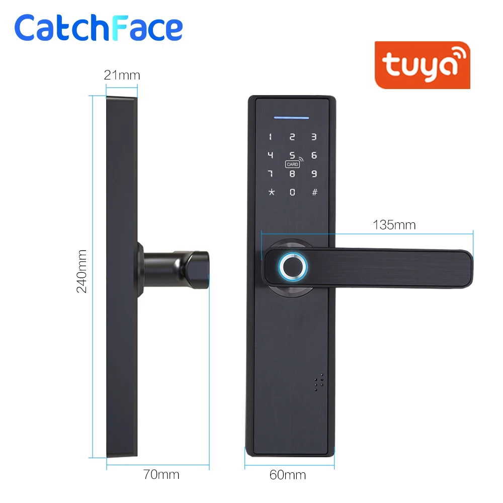 Tuya Smart APP/отпечаток пальца/Пароль/смарт-карта/разблокировка ключаПоддерживает обычный открытый режим (свободный доступ)Размер врезного замкаАнглийский VoiceПанель для волочения проволокиМатовый корпусУниверсальная как для правой, так и для левой двери