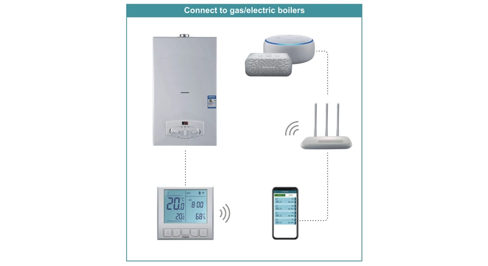 Умный термостат с Wi-Fi, контроллер температуры для газового котла, электрический подогрев пола, дисплей влажности, работает с Alexa