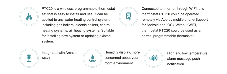 Плохо что инструкция на английском. Но в интернете от ptc10 подходит. Поставил сразу, все работает. На газовый котел брал. Приложение удобное на русском. Подключить wifi пришлось немного повозиться, но все же разобрался. Буду тестировать. Если что дополню. По моему мнению это лучший термостат за такие деньги. Гистерезис 0.3*
