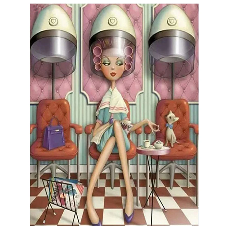 Алмазная 5D картина сделай сам, полностью квадратная Вышивка крестиком, полная вышивка, картина из страз для парикмахерской леди, значки AA136